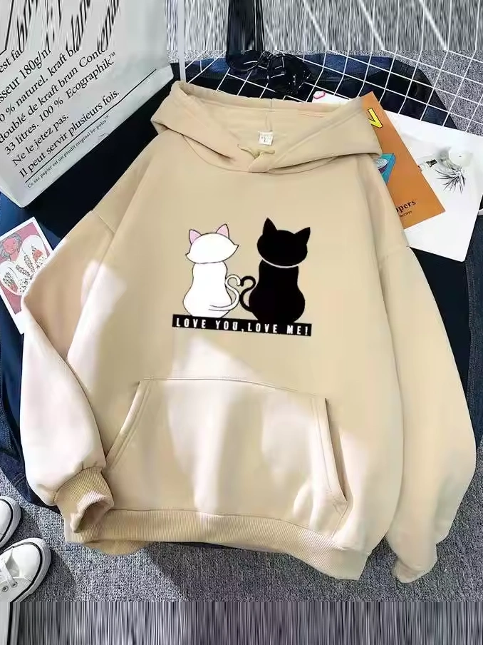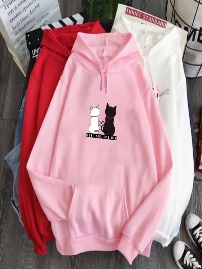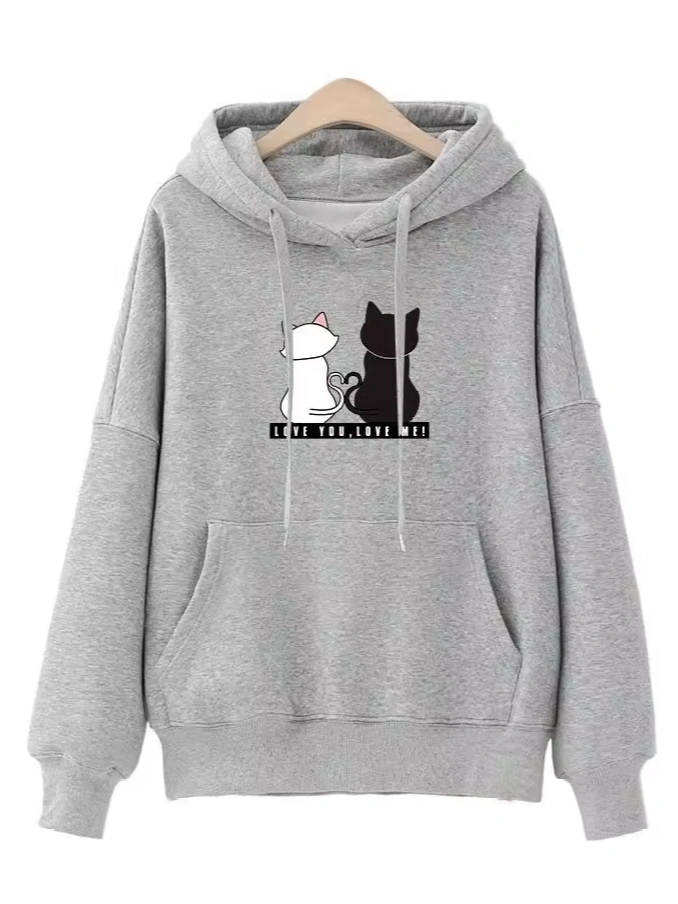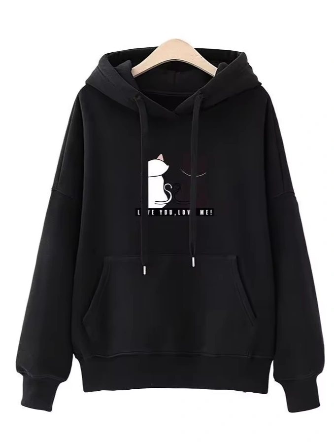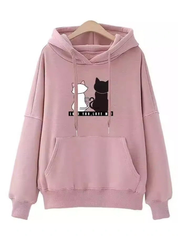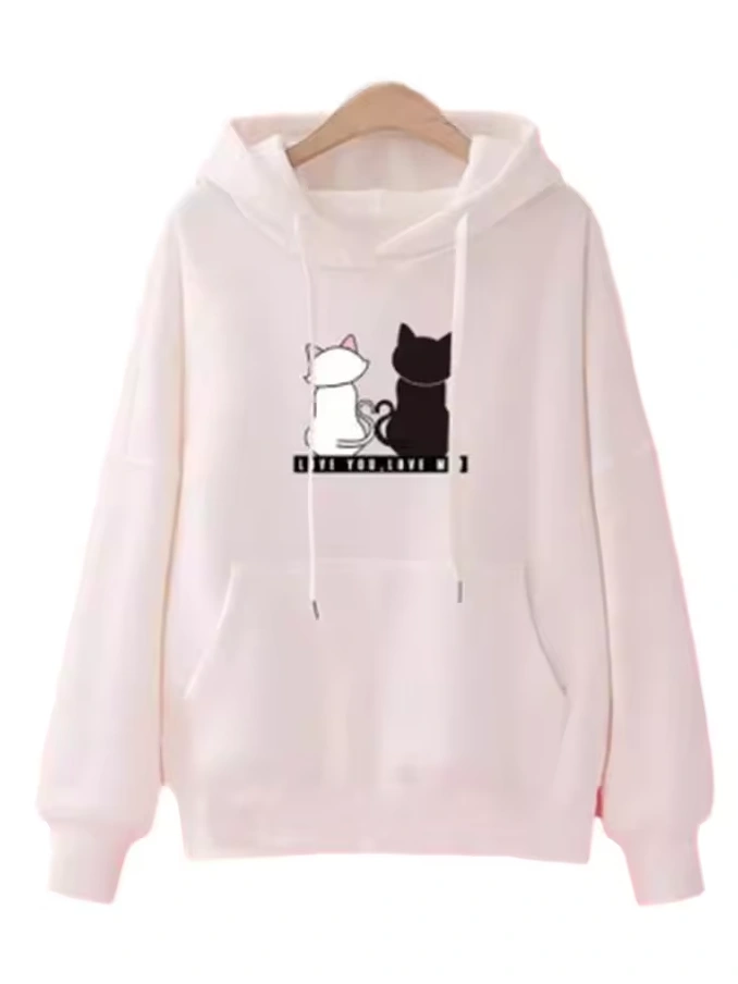 Streetwear Lovely cute girl Hoodies Long Sleeve Hoodie Cute Cat Print Padded Pullover