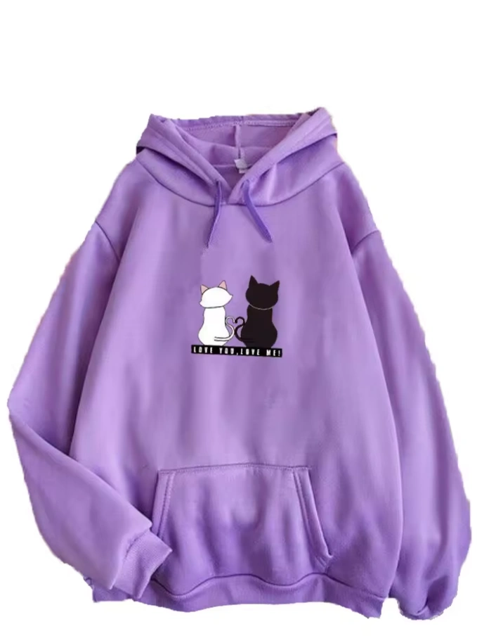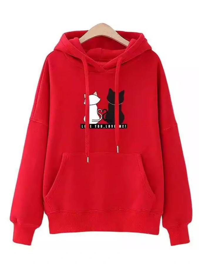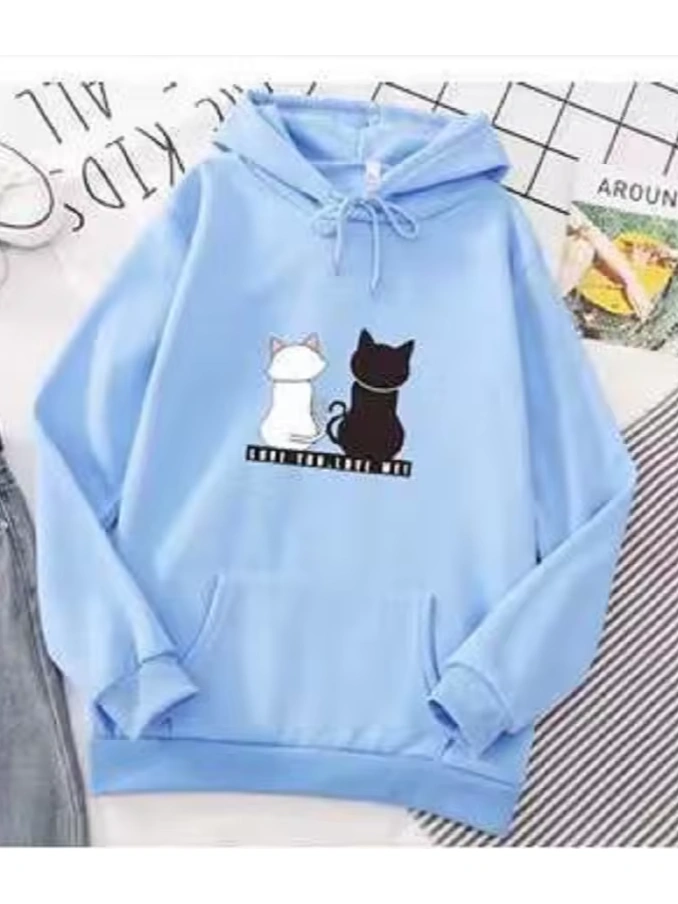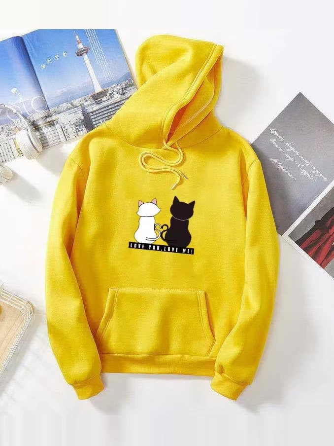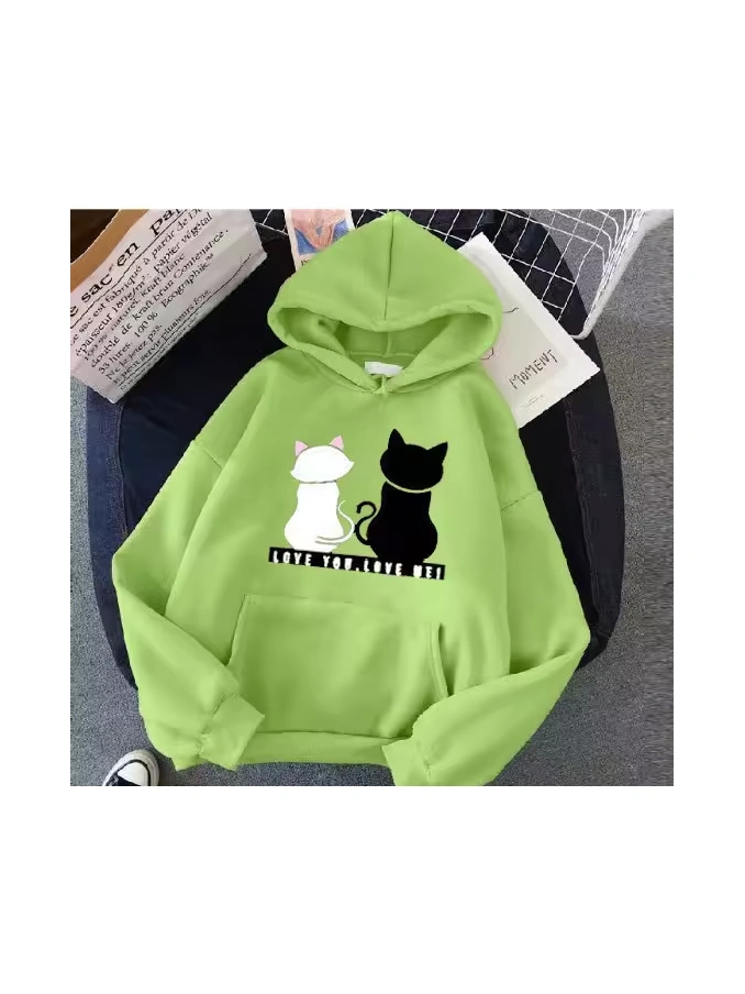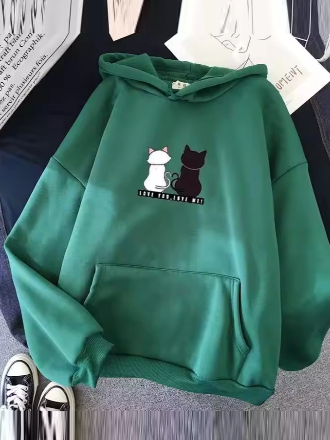 Streetwear Lovely cute girl Hoodies Long Sleeve Hoodie Cute Cat Print Padded Pullover