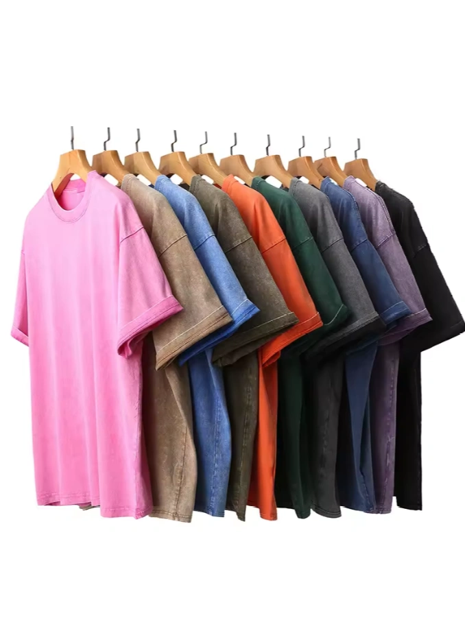 High-Quality Acid Wash T-shirt 230g Men Distress Unisex sleeve Printed Drop Shoulder oversize 100% Cotton