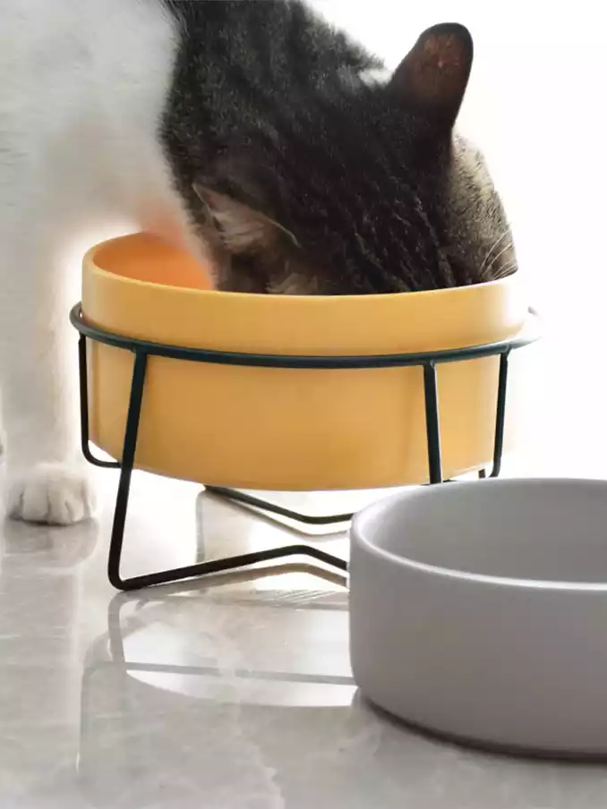 Ceramic Raised Dog Bowl with Metal Stand Pet Bowl Food and Water bowl Dog Dish Non-slip