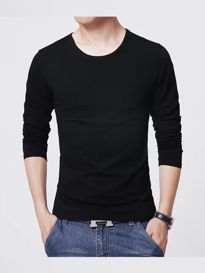 Men's thin autumn round neck slim long T-shirt men's youth color base long sleeve T-shirt