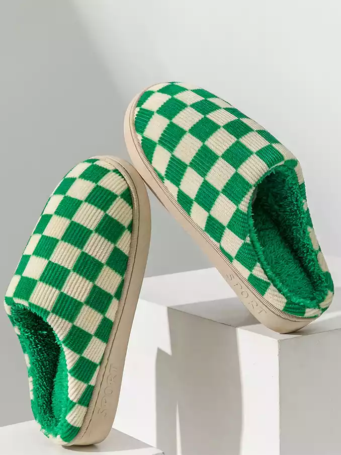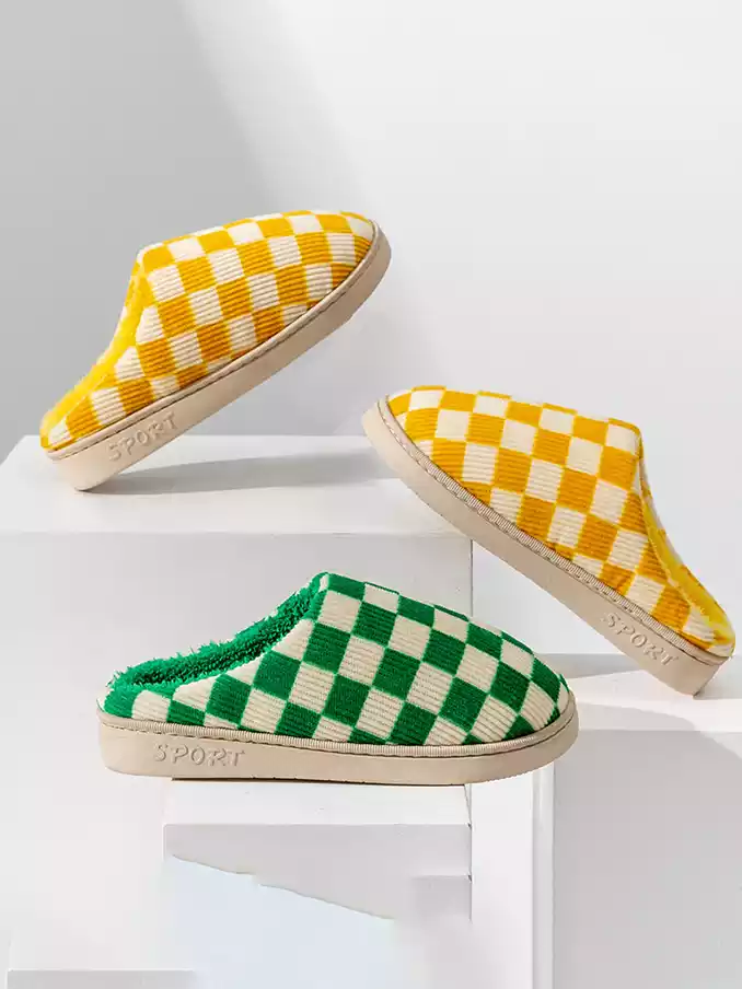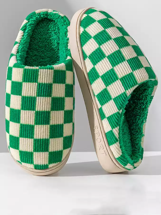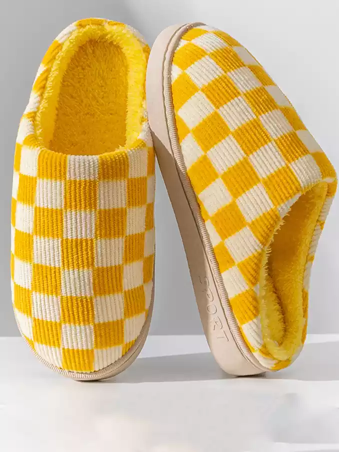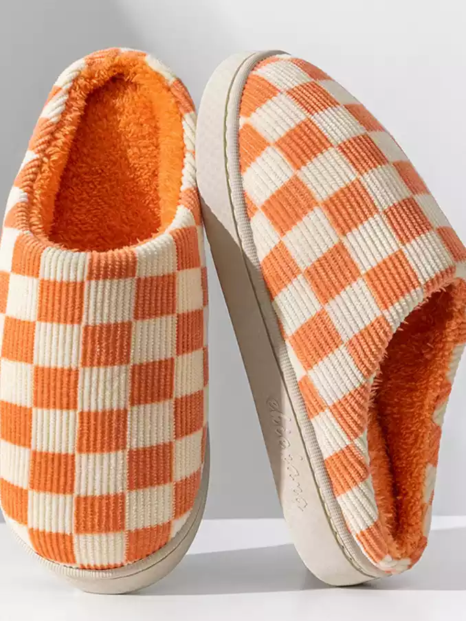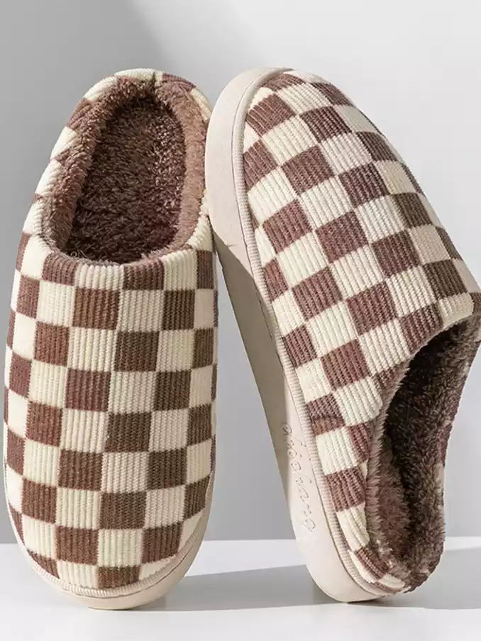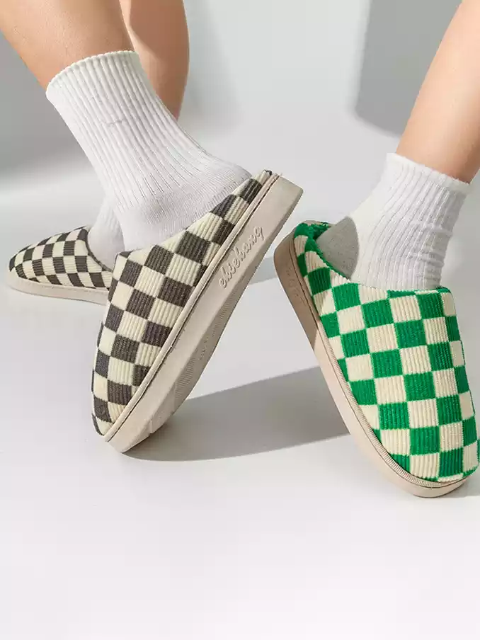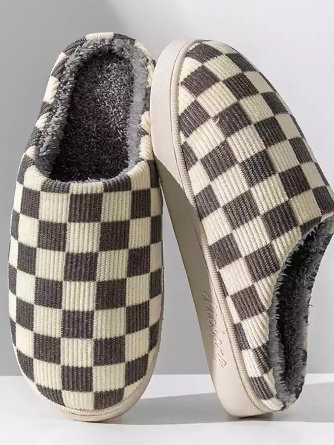 Winter Warm Slippers Corduroy Slides Home Shoes Women Men Indoor Non-Slip Soft Plush Checked Checkerboard Slippers 2024