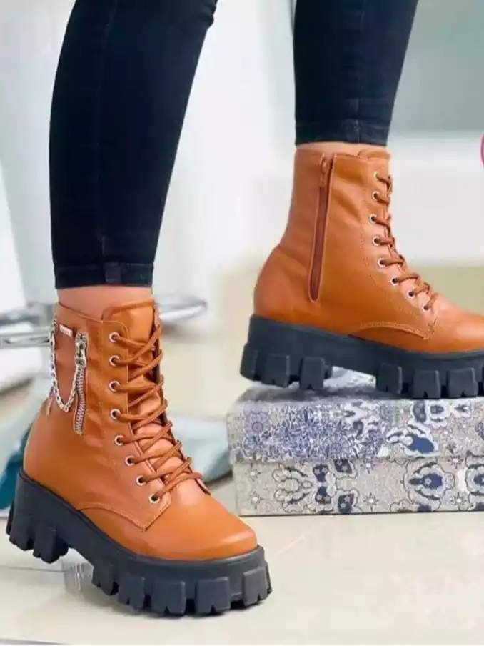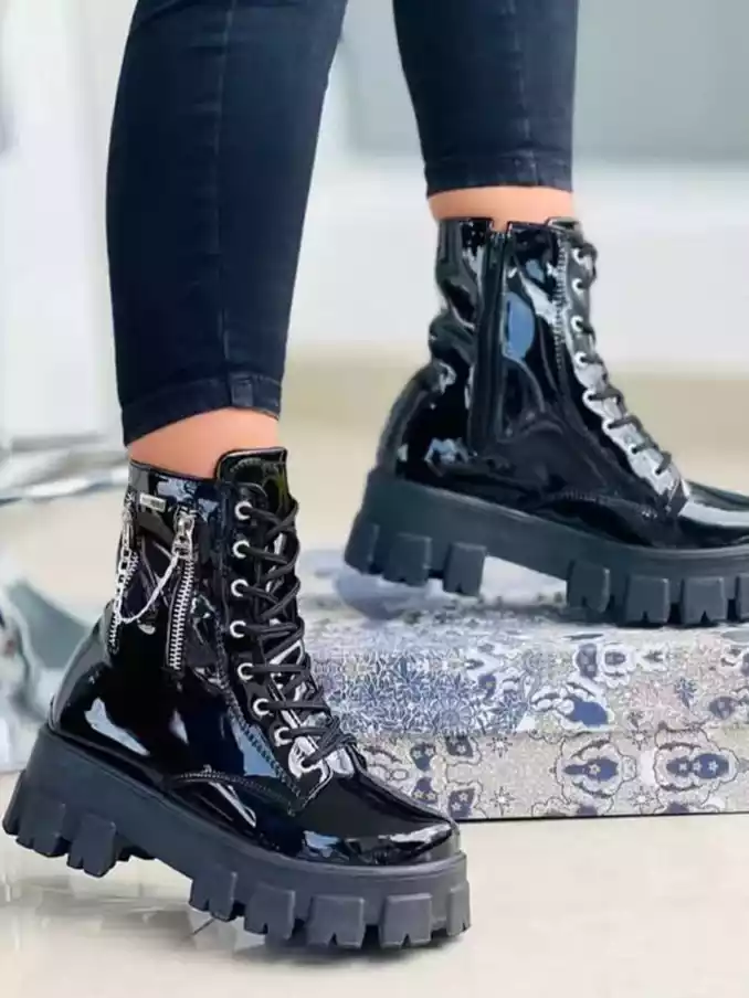 Wholesale Womens Black Fashion Winter Patent Leather Waterproof Luxury Designer Platform Chunky Heel Boots Women Shoes 2023