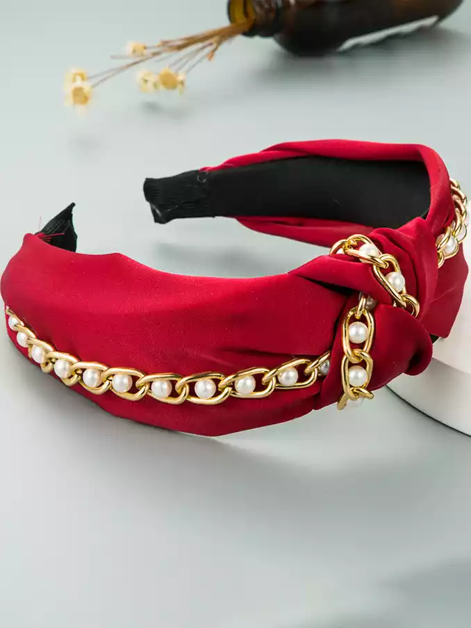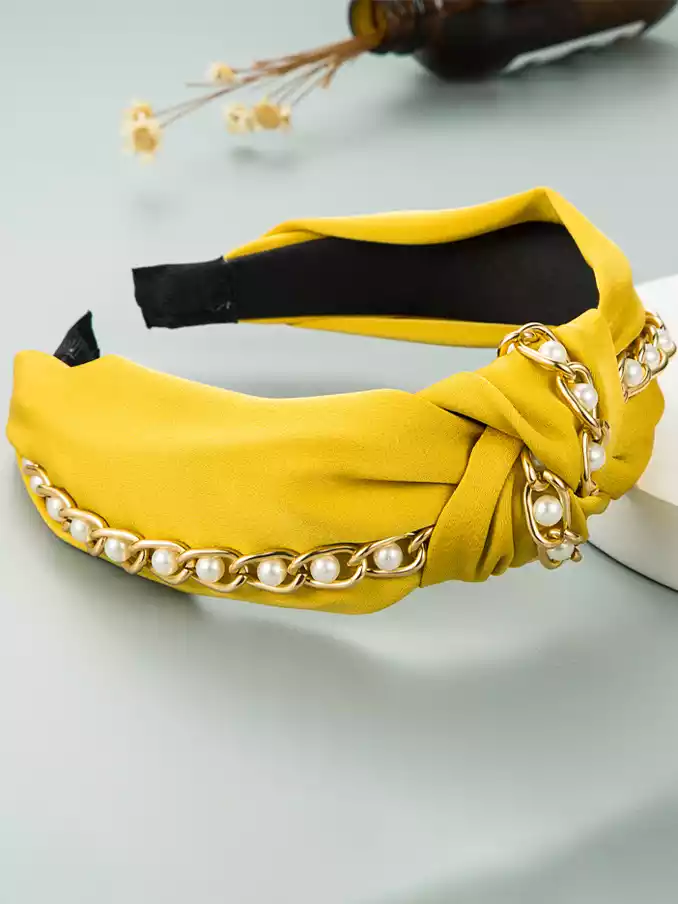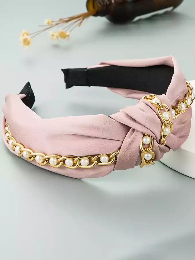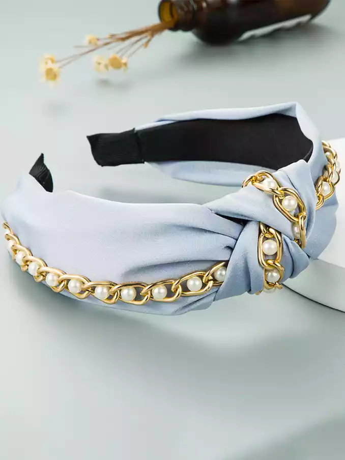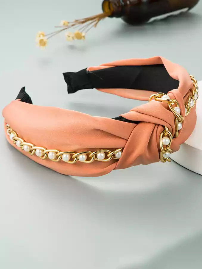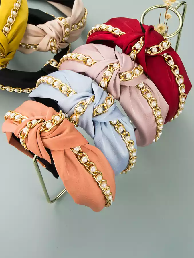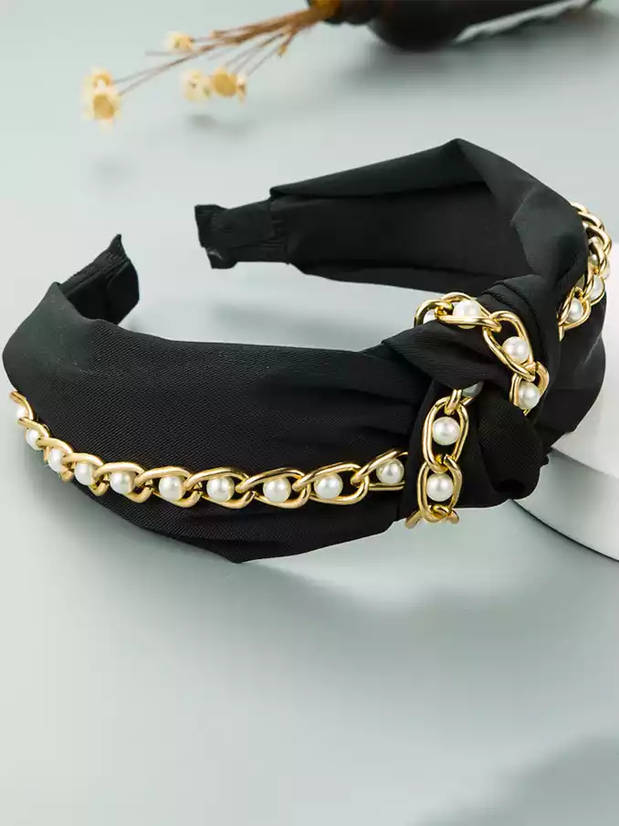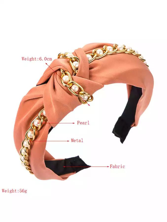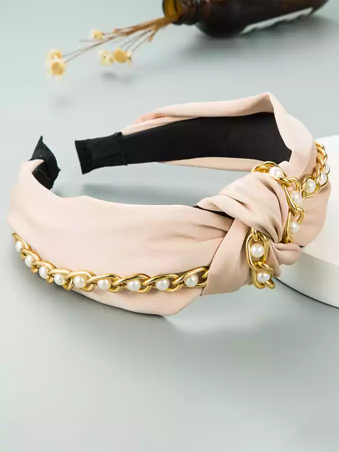Solid Color Cloth Hairband Pearl Accessories Top Knot Gold Chain Headband