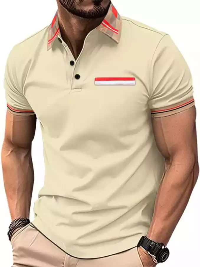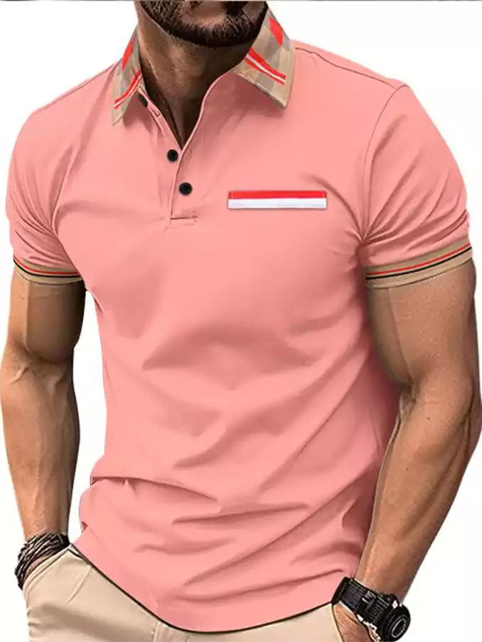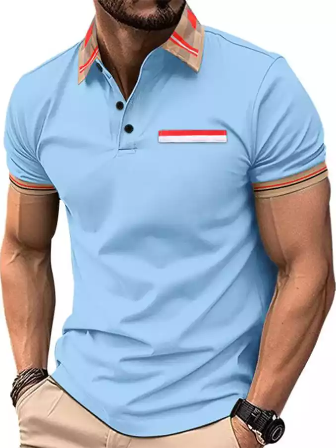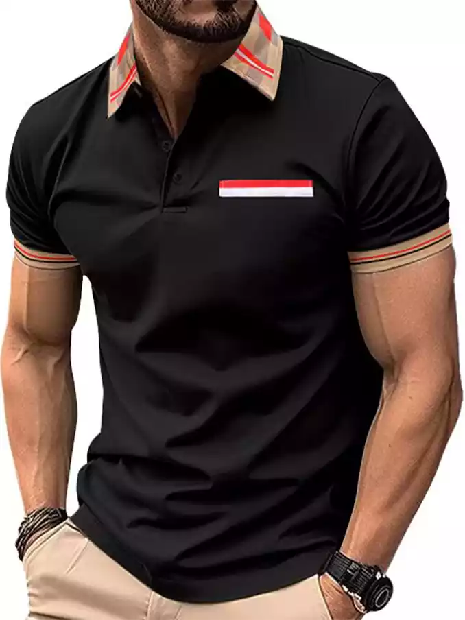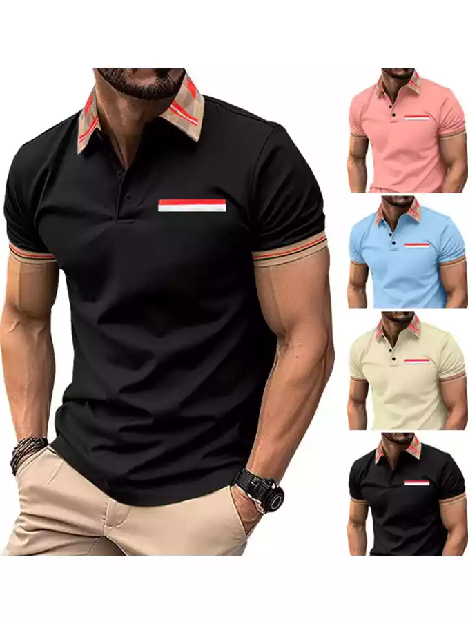 Men's polo neck shirt multi color splicing polyester T-shirt stripe Men's Polo t shirt customized design