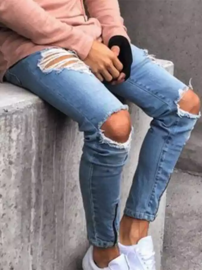 Mens High Quality Denim Pant Streetstyle Ripped Hole Jeans Men Fashion Trend scratch Jeans