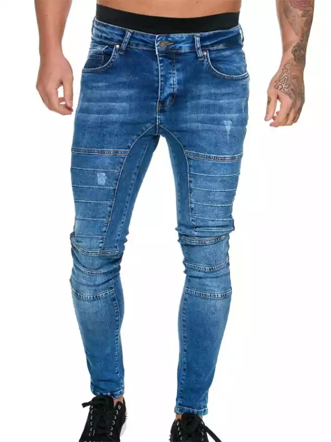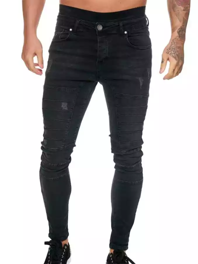 Men Ripped Skinny Jeans High Quality Black Blue Distressed Slim-Fit Pencil Pants Locomotive Zipper Denim Pants Hip Hop Trousers