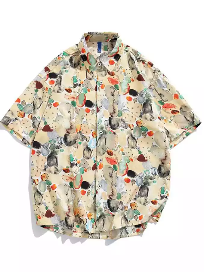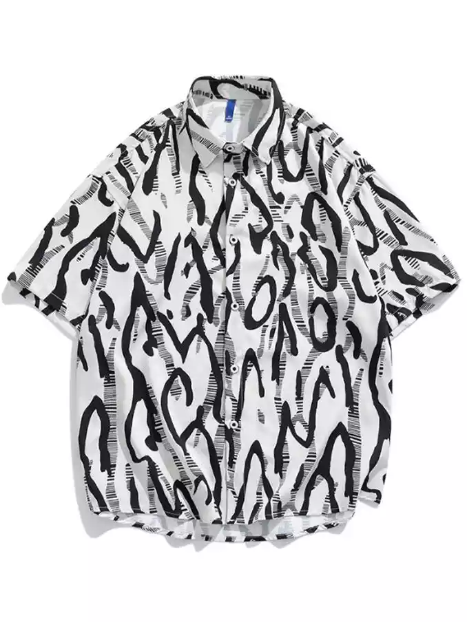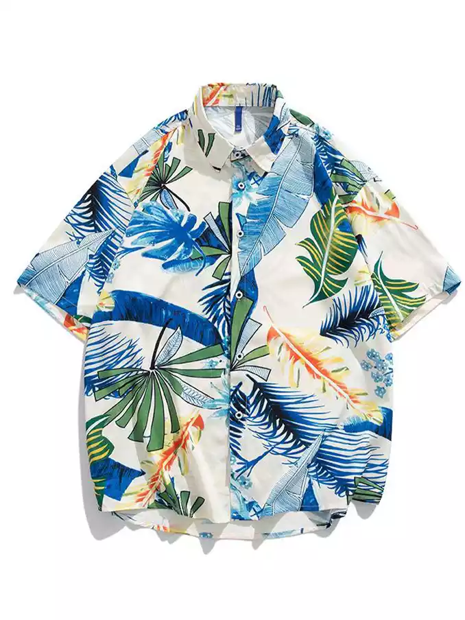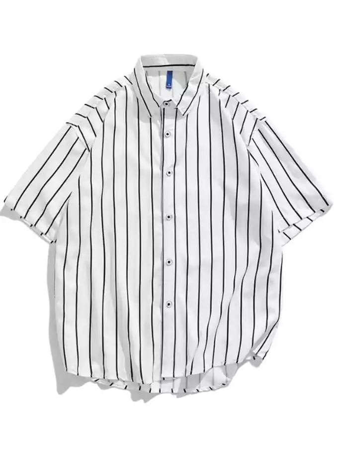 New Short Sleeve Shirt Men's Casual Striped Beach Hawaiian Men's Trend Style Shirt Top