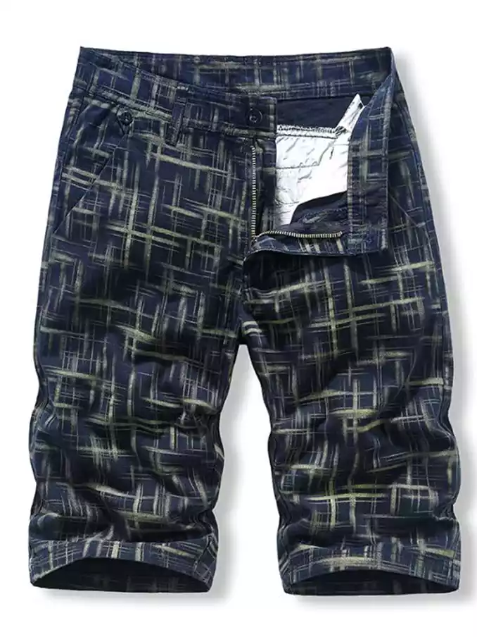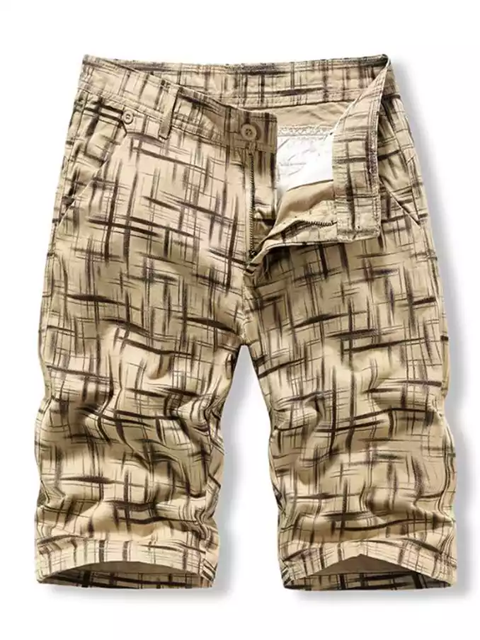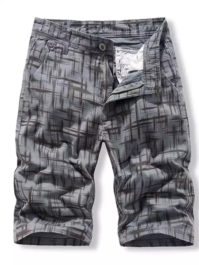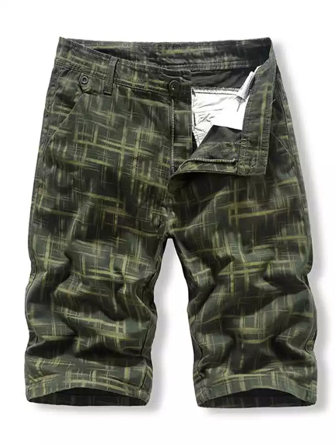 Cargo Shorts Men Loose Fit High Quality Black Khaki Short Pant Multi Pockets Cotton Men Plaid Cargo Shorts