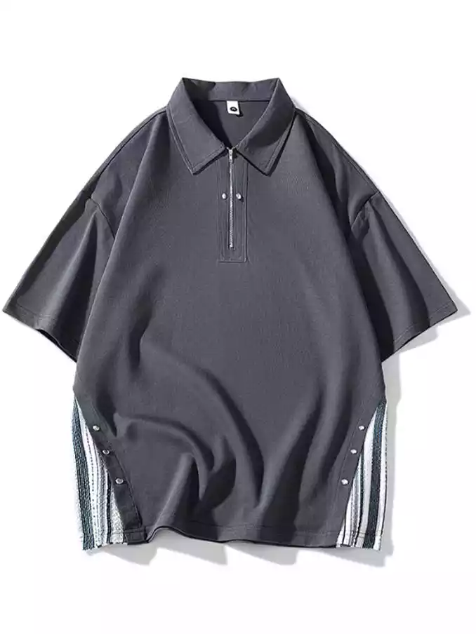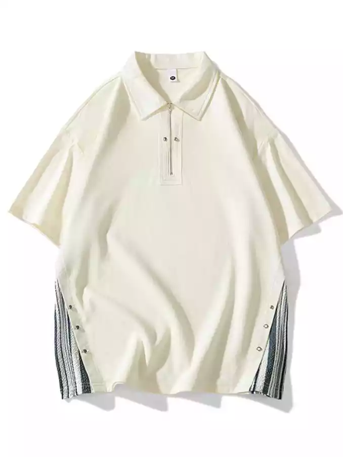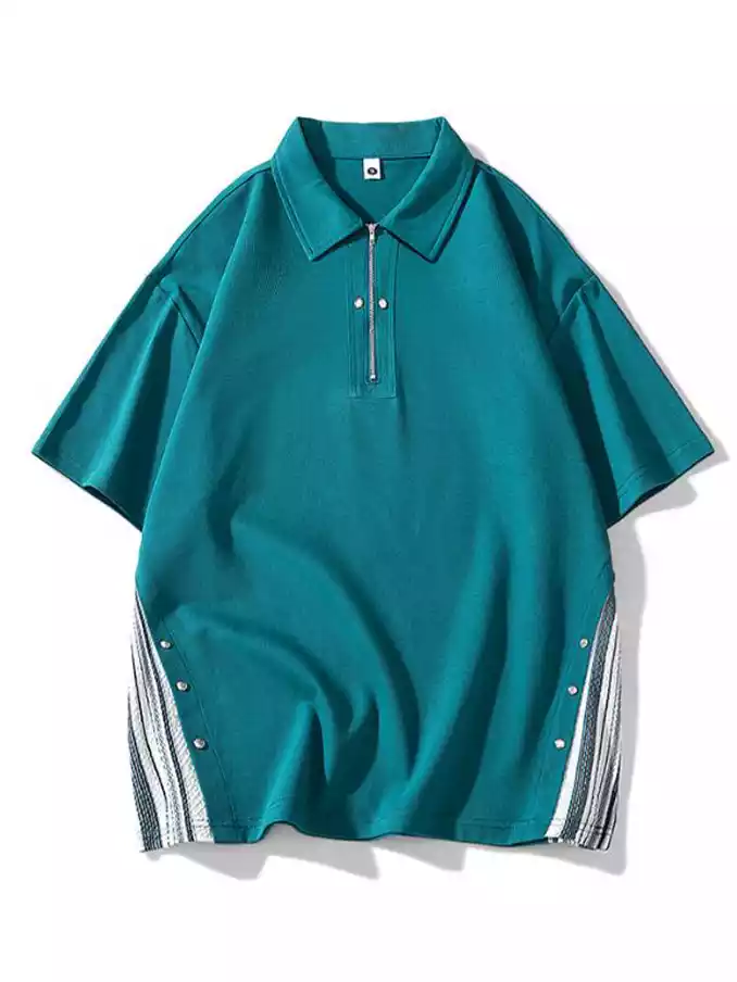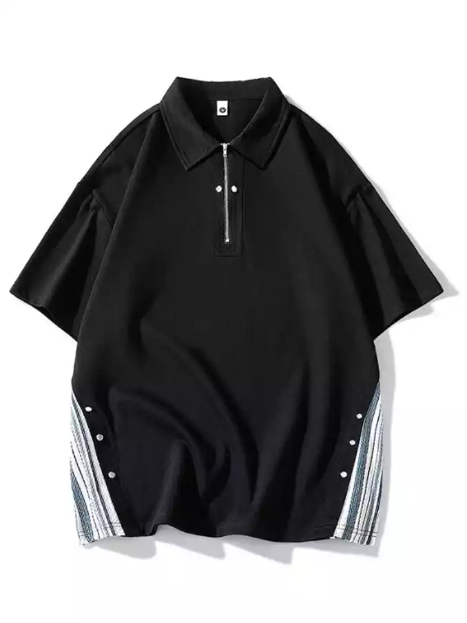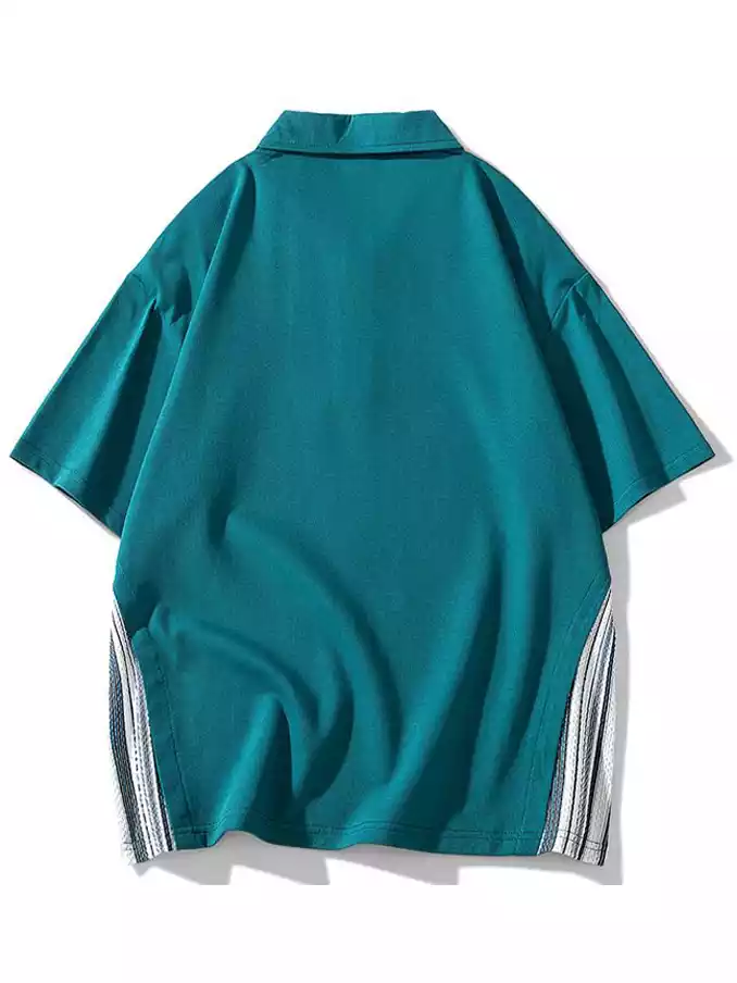 Wholesale Japanese style loose lapel short sleeved T-shirt fashion trend color block youth retro men's Polo shirt