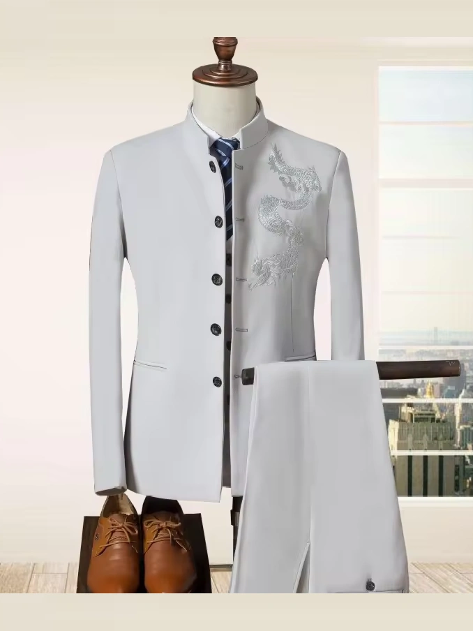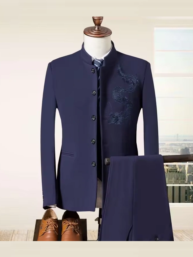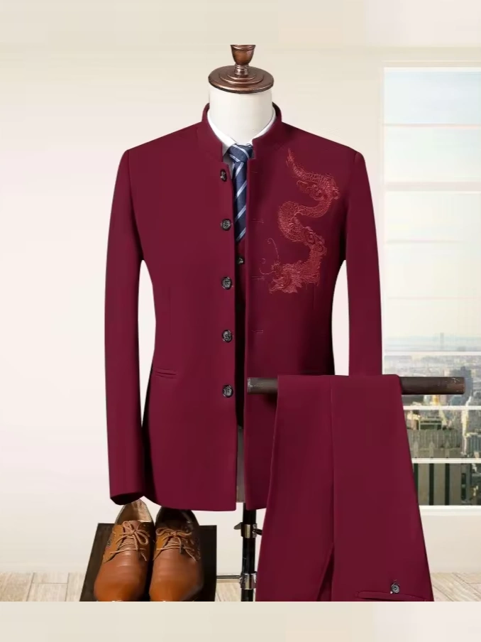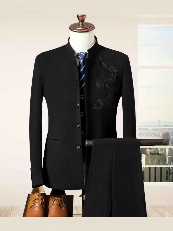 M-5XL New autumn and winter styles Three piece suit Slim fit standing collar set