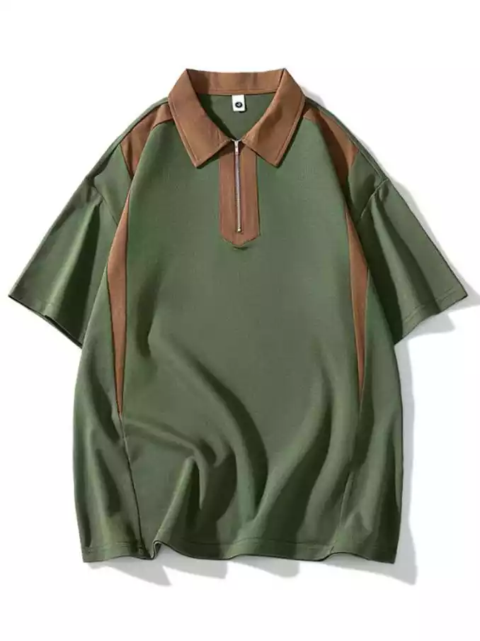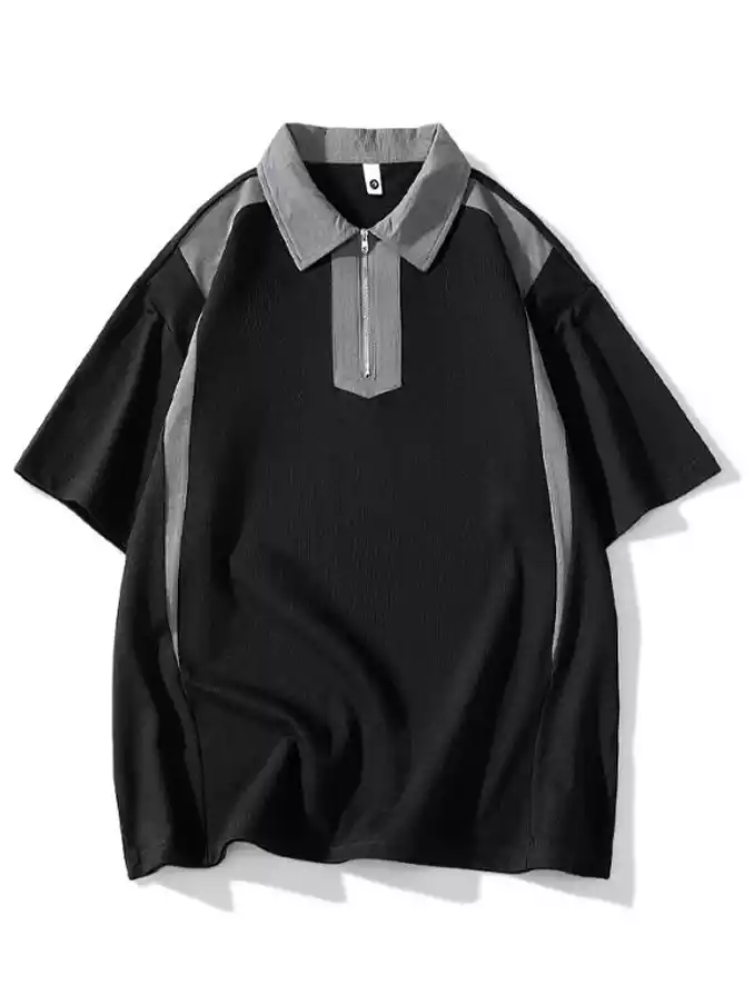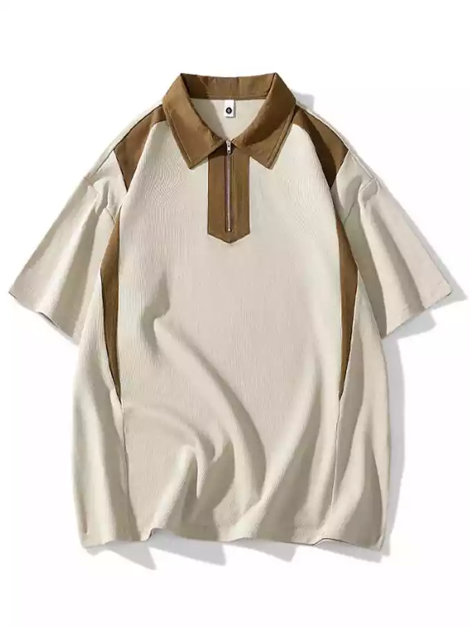 High Quality Cotton Knit Men's Turn-down Collar Off Shoulder Half Sleeve Washed Polo T-Shirt for Men