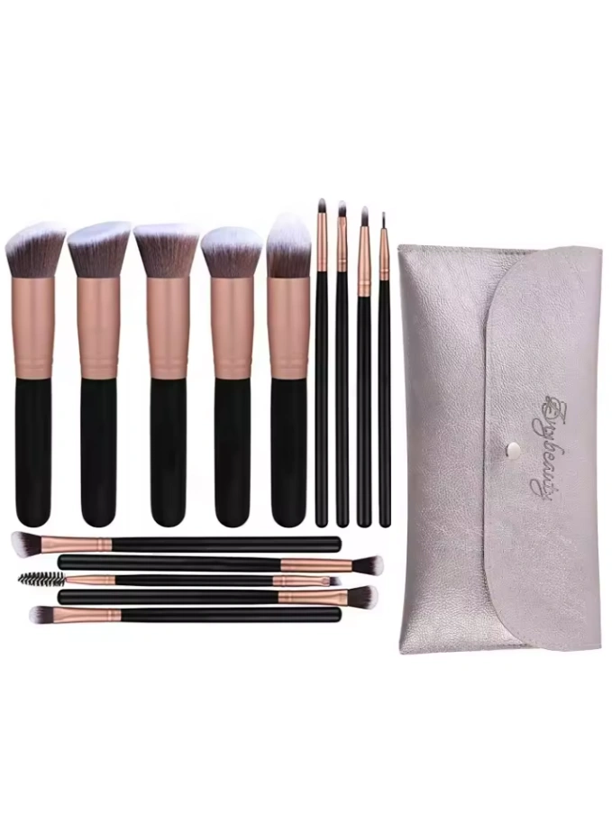 14pcs professional makeup brush set premium synthetic with wooden handle cosmetic beauty tools custom label