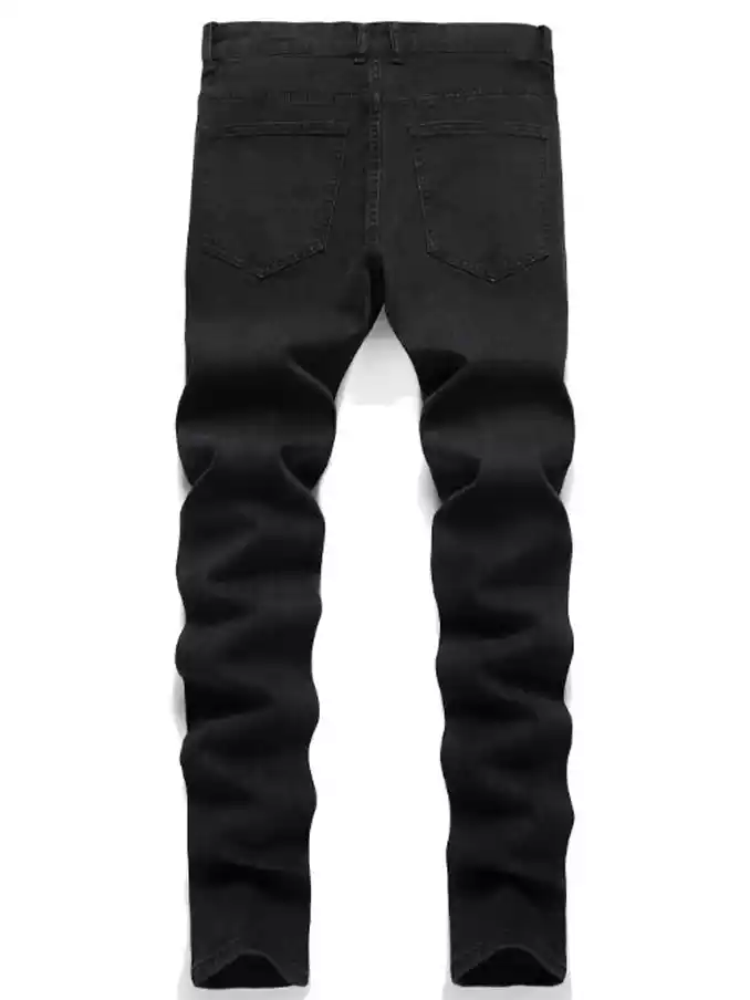 Men's jeans four seasons embroidery slim fit pants Fashion elastic comfortable trend black denim pants
