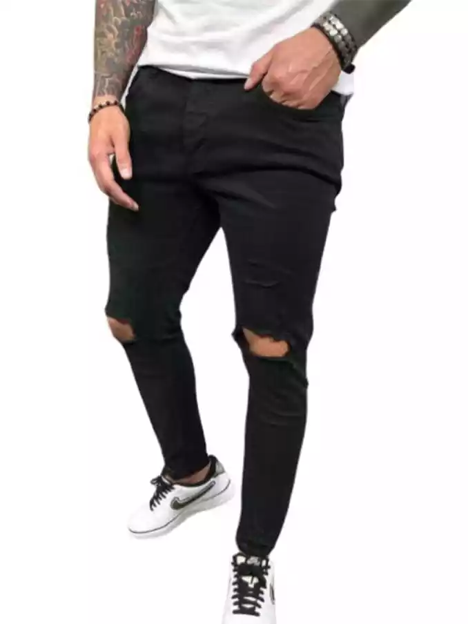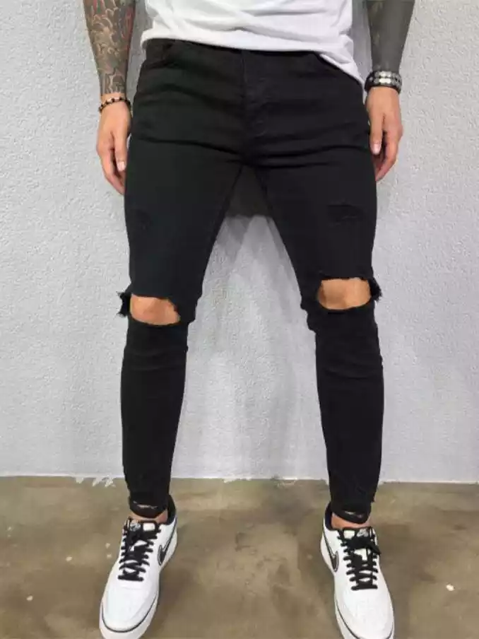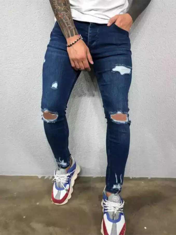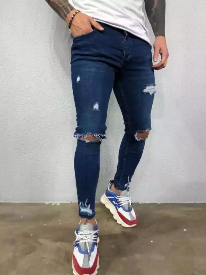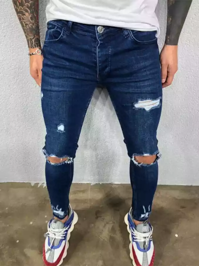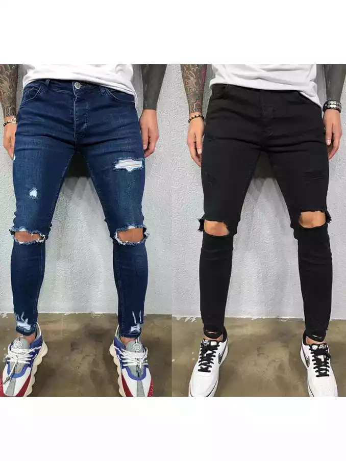 Stretch Slim Denim Pant High Quality Ripped Hole Street Jeans Casual Pants Trousers For Men