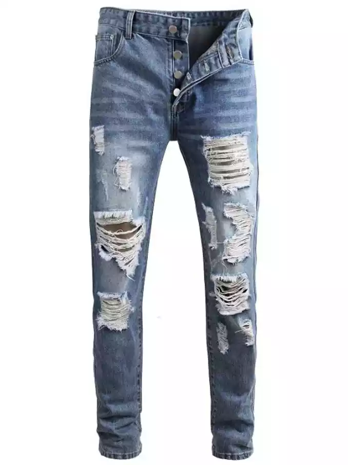 Casual hip hop rip hole denim jeans
