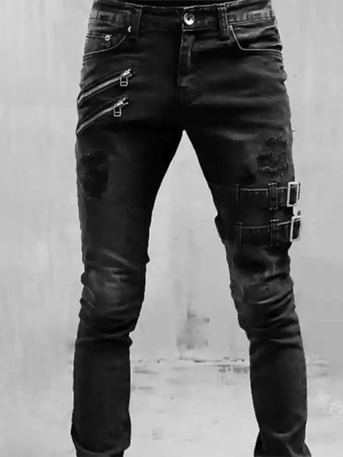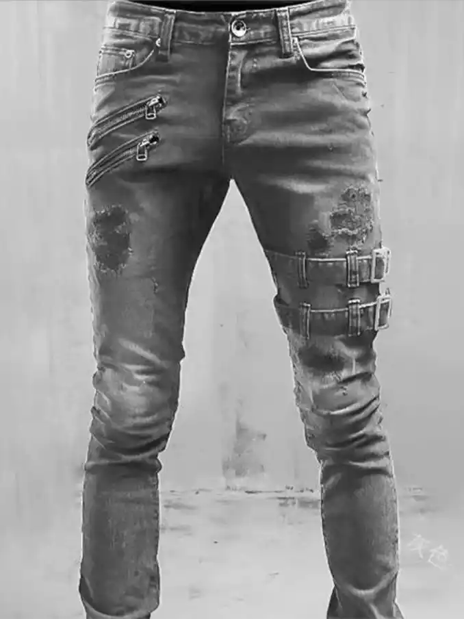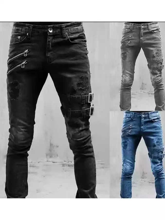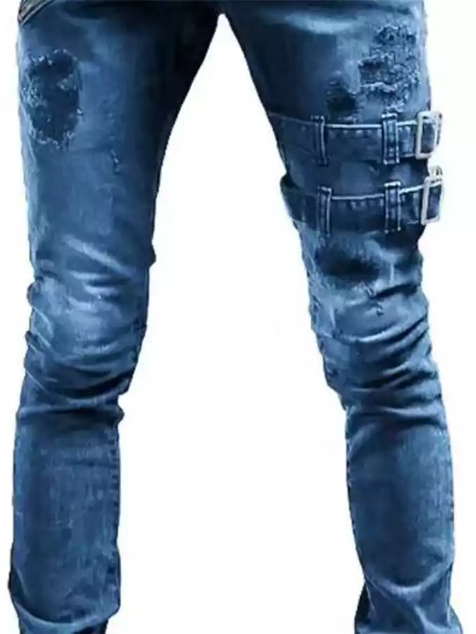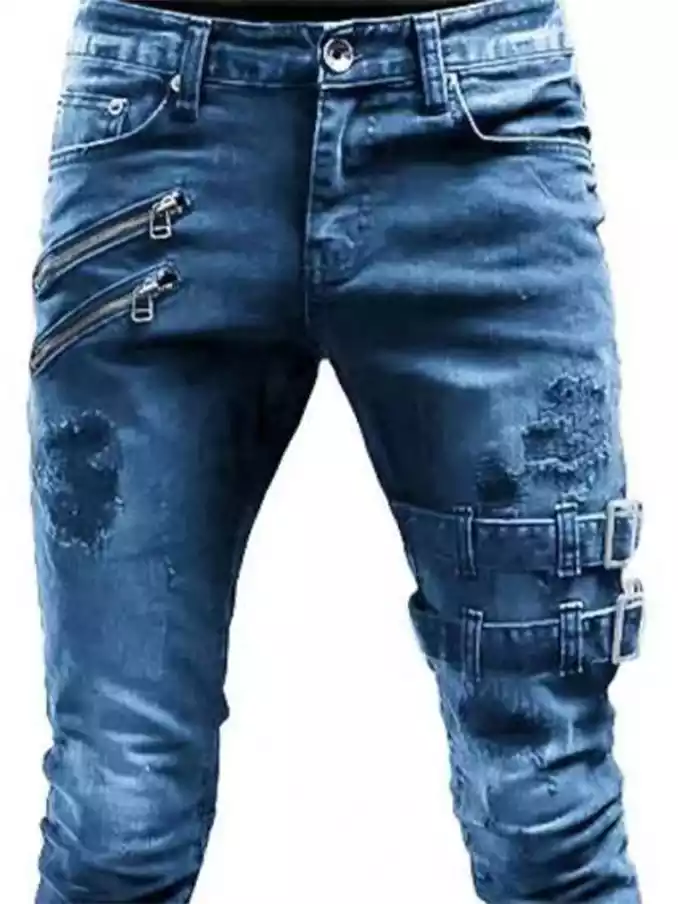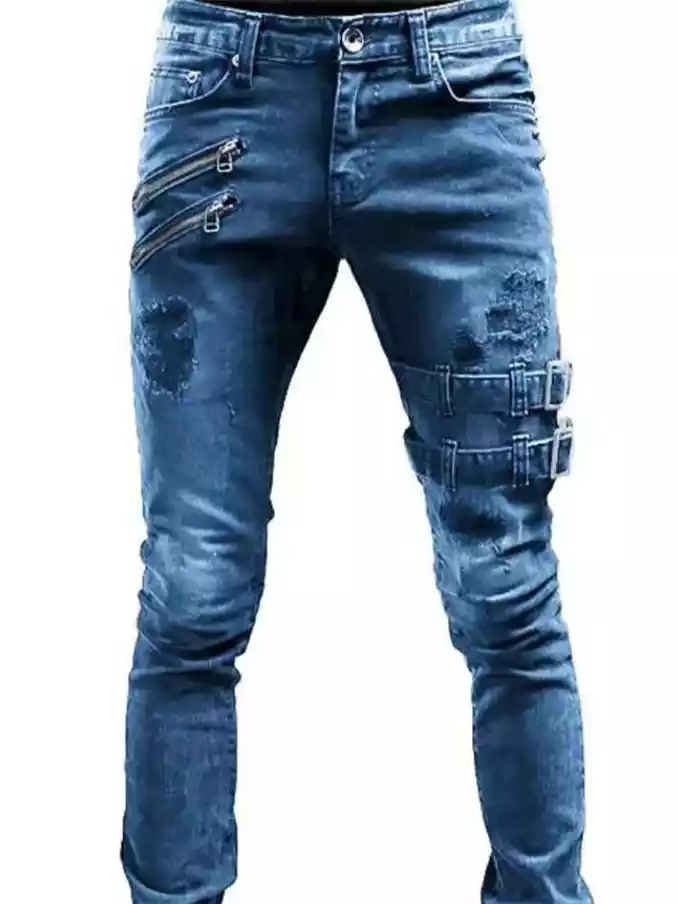 New Men's Slim Fit Classic Blue Biker Jeans For Moto Casual Big Size Denim Cargo Pants Fashion Ripped Jeans For Man