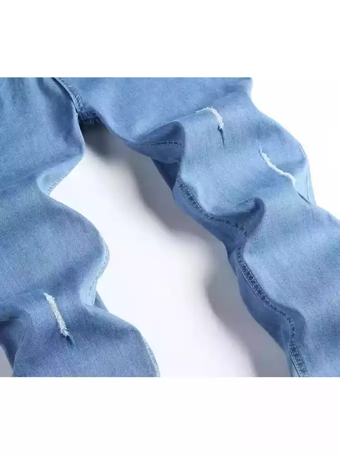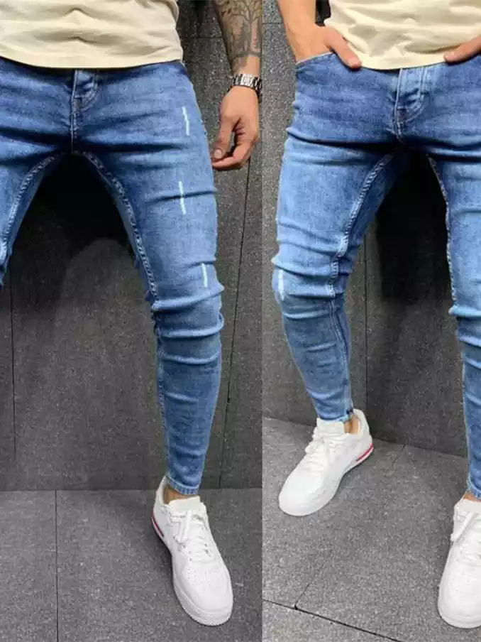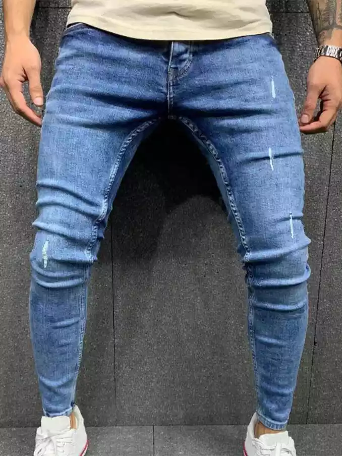 High Street Style Man Skinny Blue Jeans Slim Fit Comfortable Jeans Ripped Denim Pant for Men