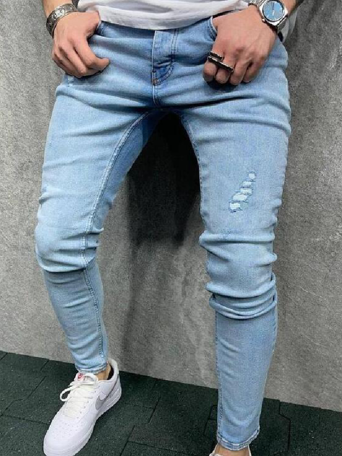 Men's Fashion Ripped Jeans Washed Slim Fit