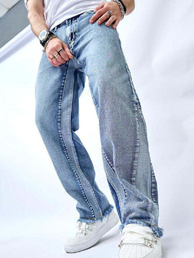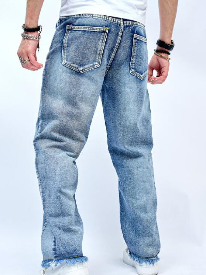 Hot sale retro casual jeans men's fashion trend loose denim pants high street wide leg pants