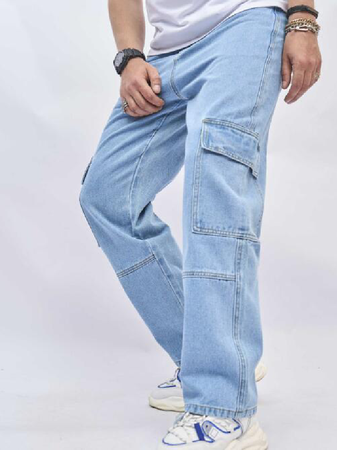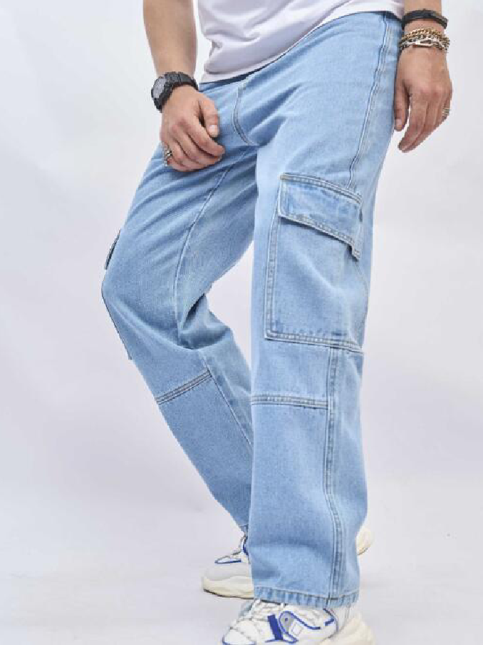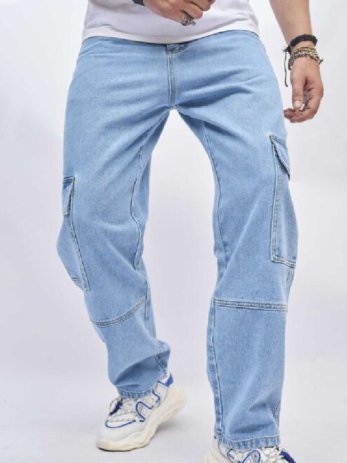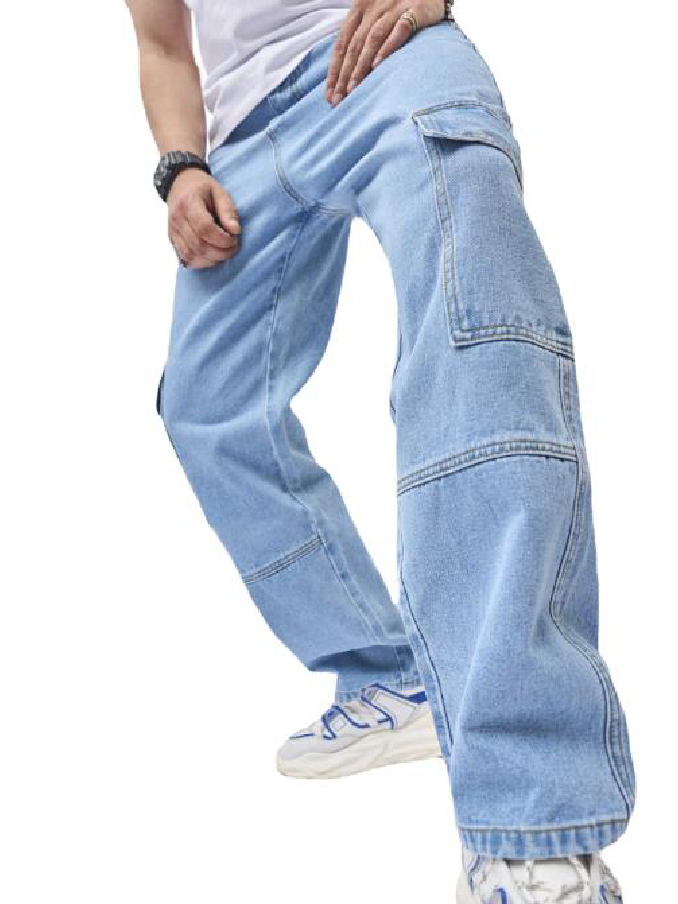 New arrivals hip hop jeans men's trend loose pants high street multi pocket wide leg pants