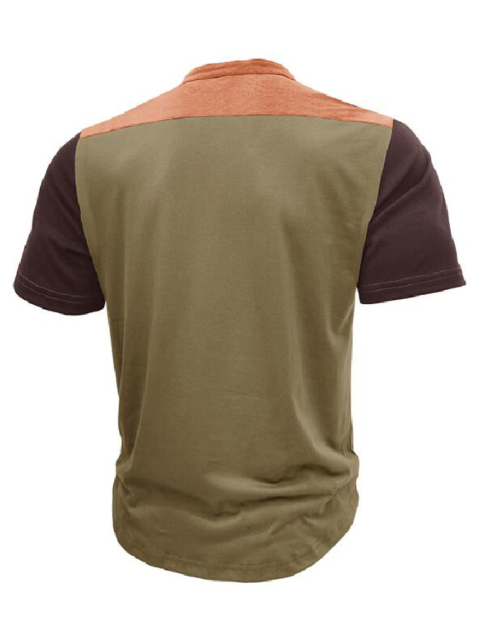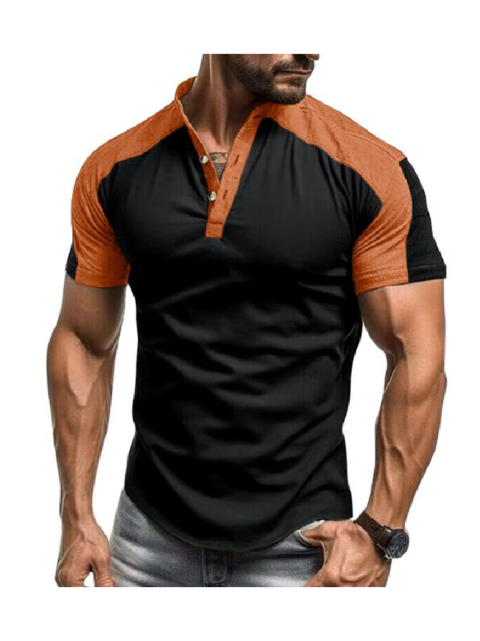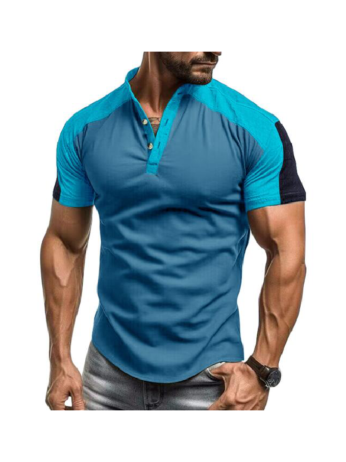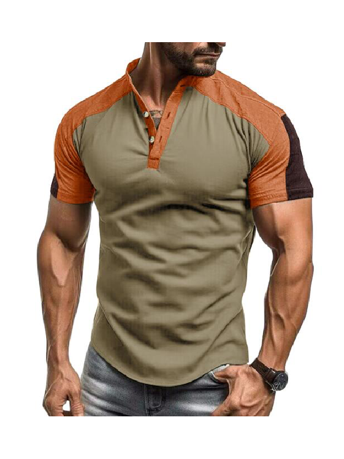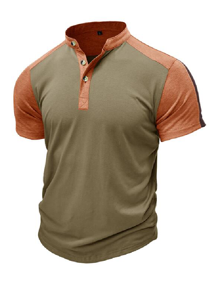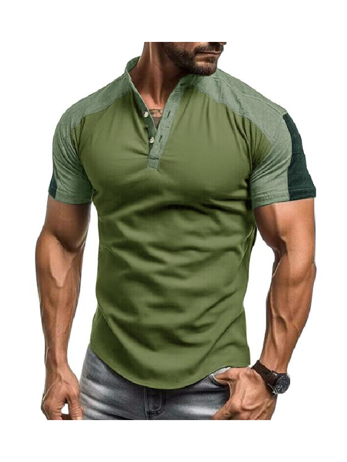 Wholesale Outdoor Sports Henley Shirt Men's Short sleeved Standing Collar Fitness T-shirt Top