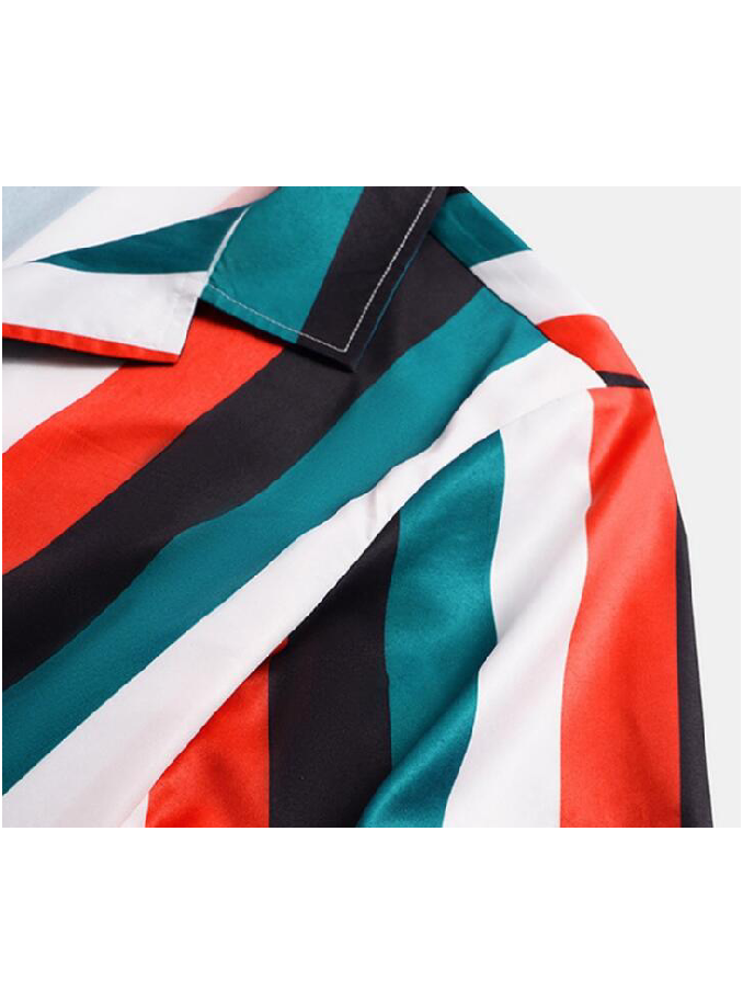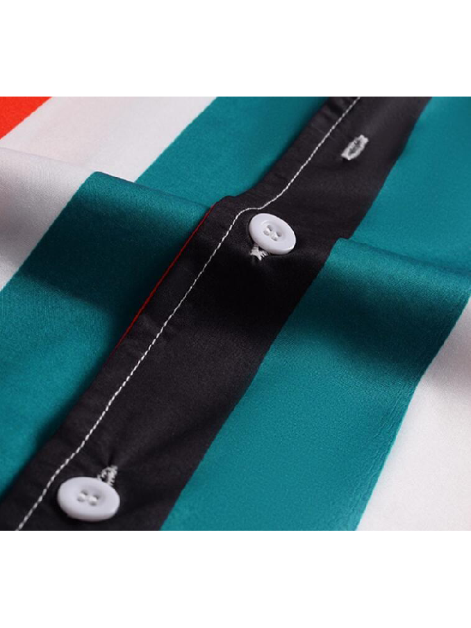 Summer Resort Men Button Up Custom Print Shirts Striped Patchwork Aloha Beach Hawaiian Beach Shirts