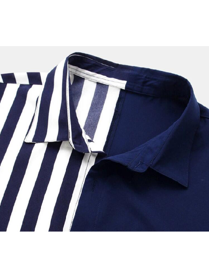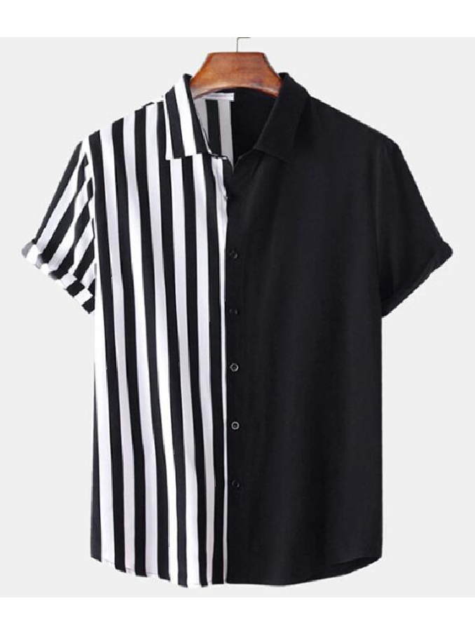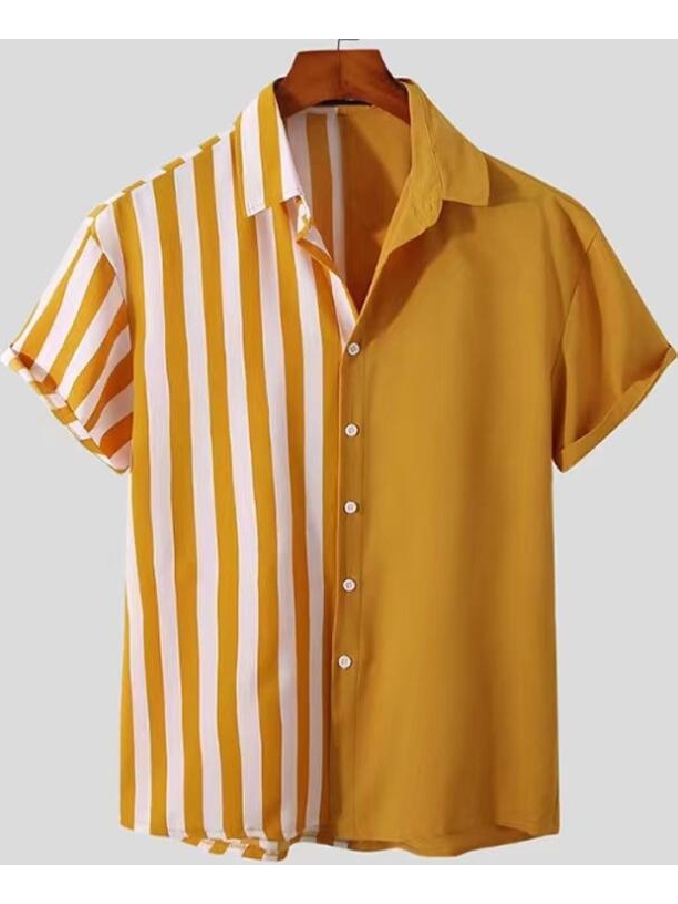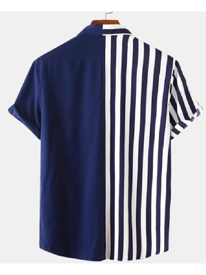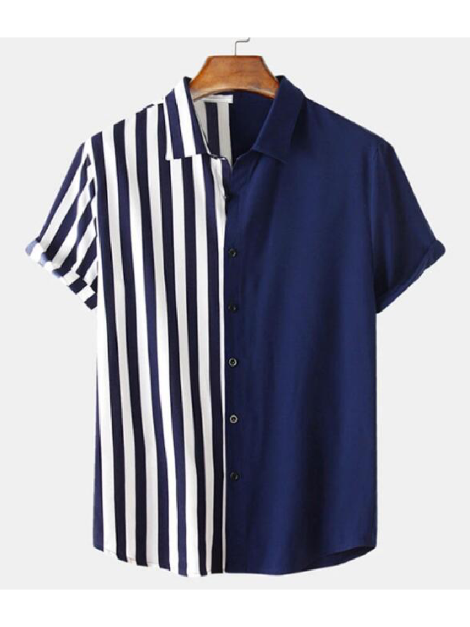 Summer new Hawaiian patchwork striped shirt for men lapel collar short sleeved casual shirts