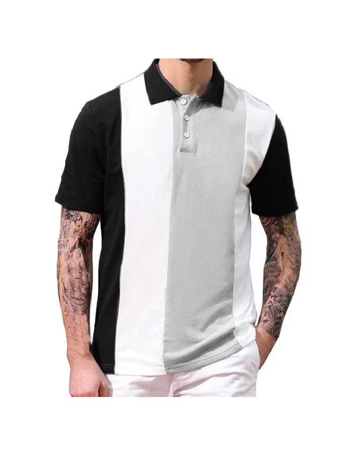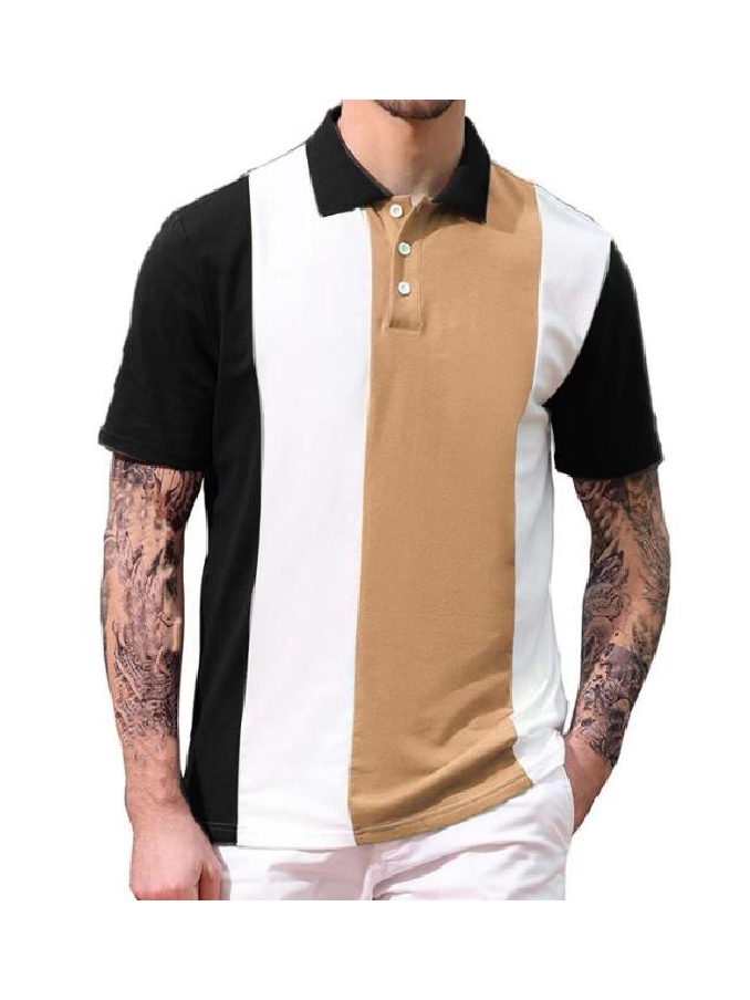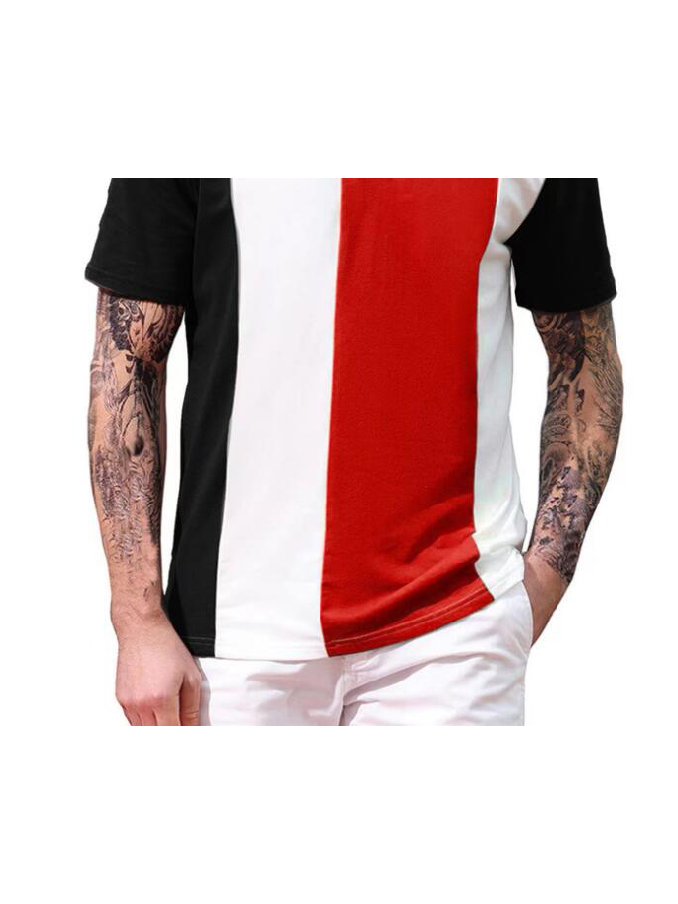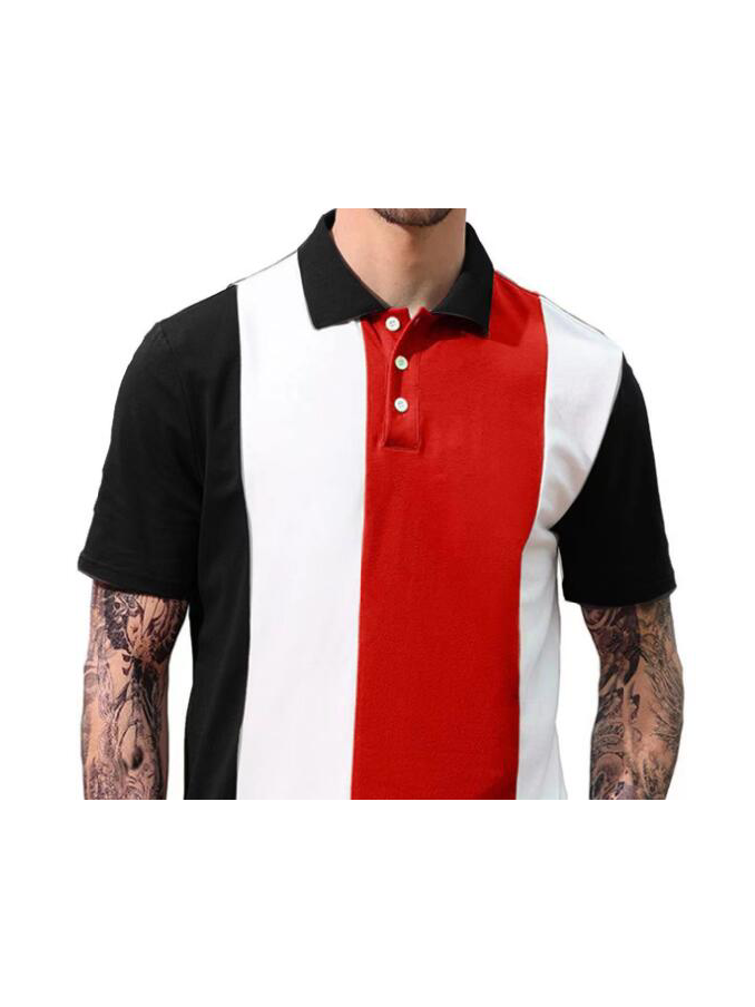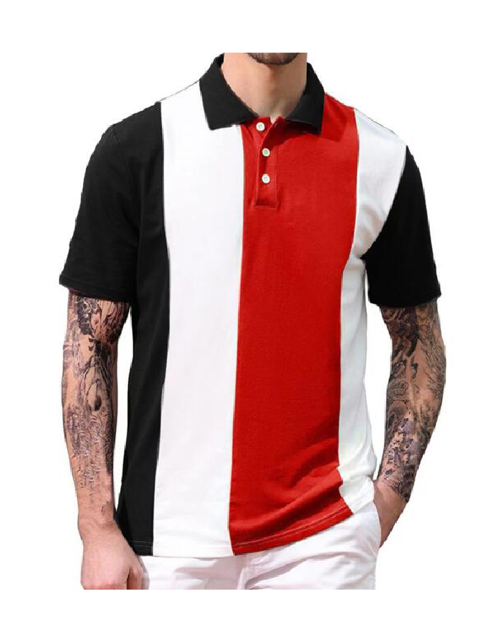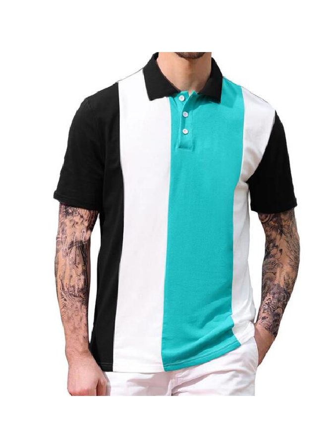 Summer New Fashion Colorful Stripe Spliced Polo T-Shirt European Size Men's Casual Short sleeved T-shirt
