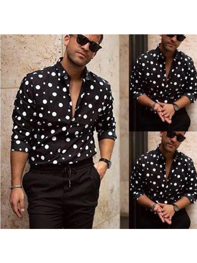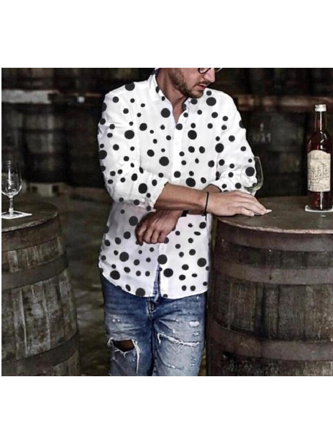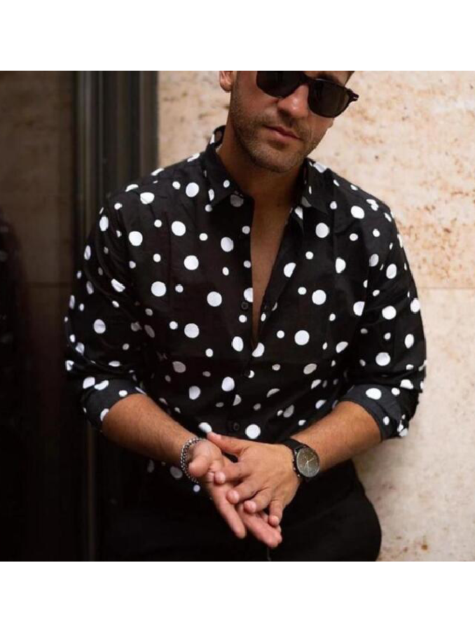 Wholesale Versatile Polka Dot Print Shirts Long Sleeve Casual Business Mens Fashion Trend Shirt