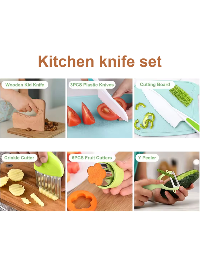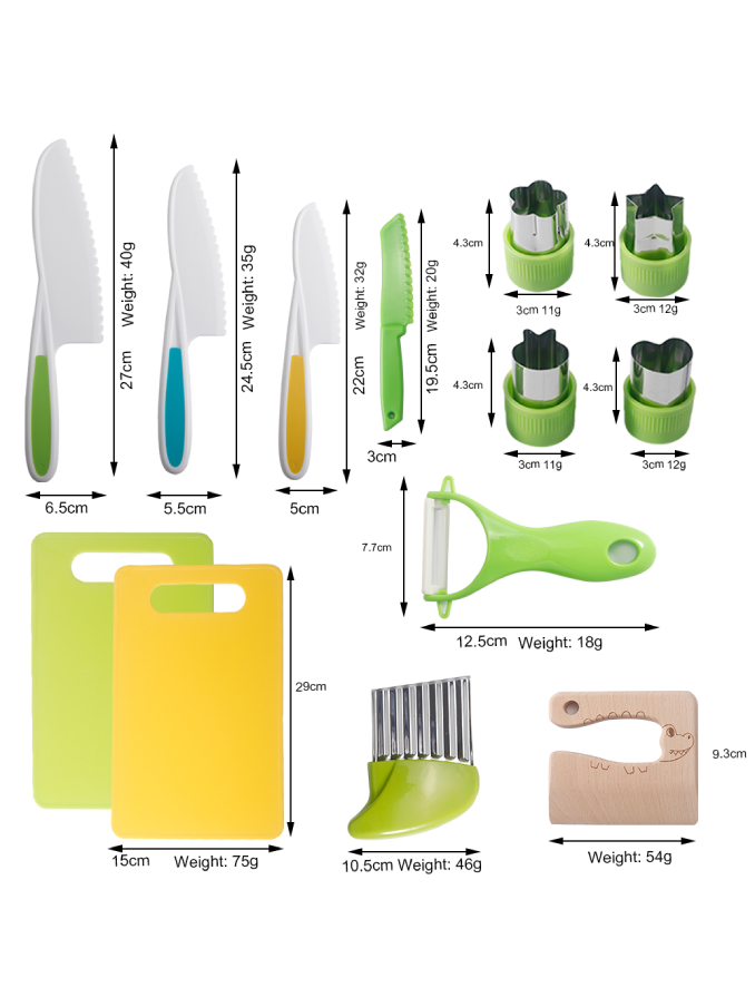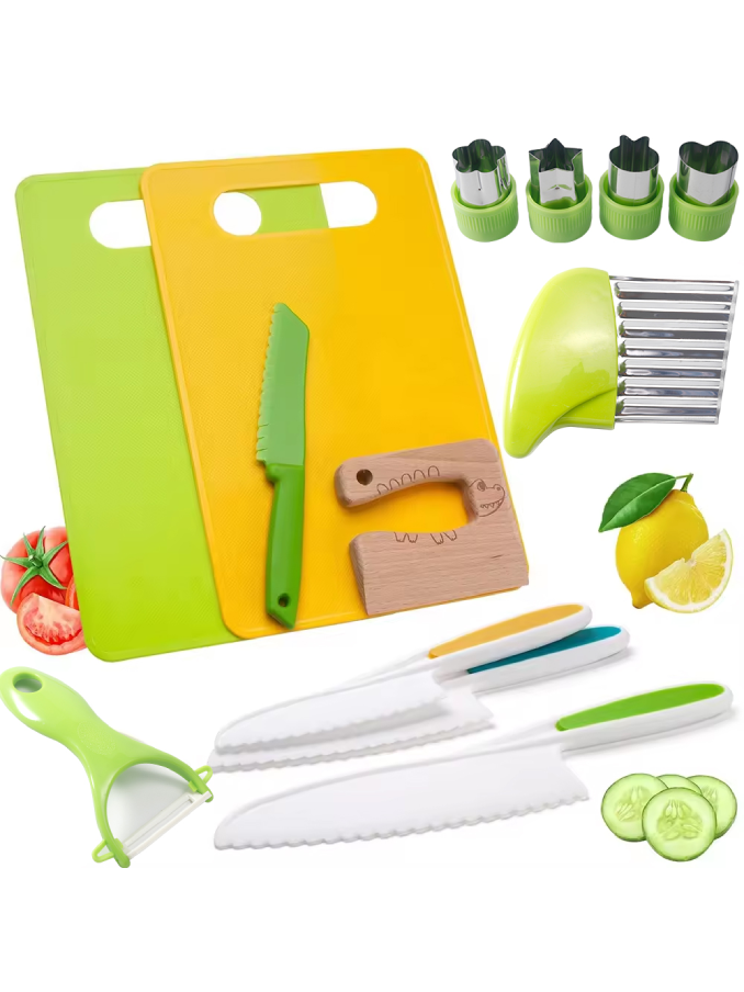 Plastic Toddlers Knives children kitchen knife set kids knife cooking set for real cooking with Cutting Board