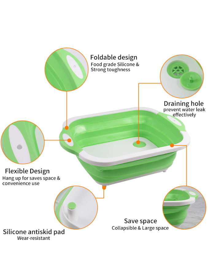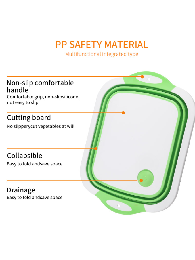 Multifunctional 2 In 1 Plastic silicone foldable collapsible chopping board with colander