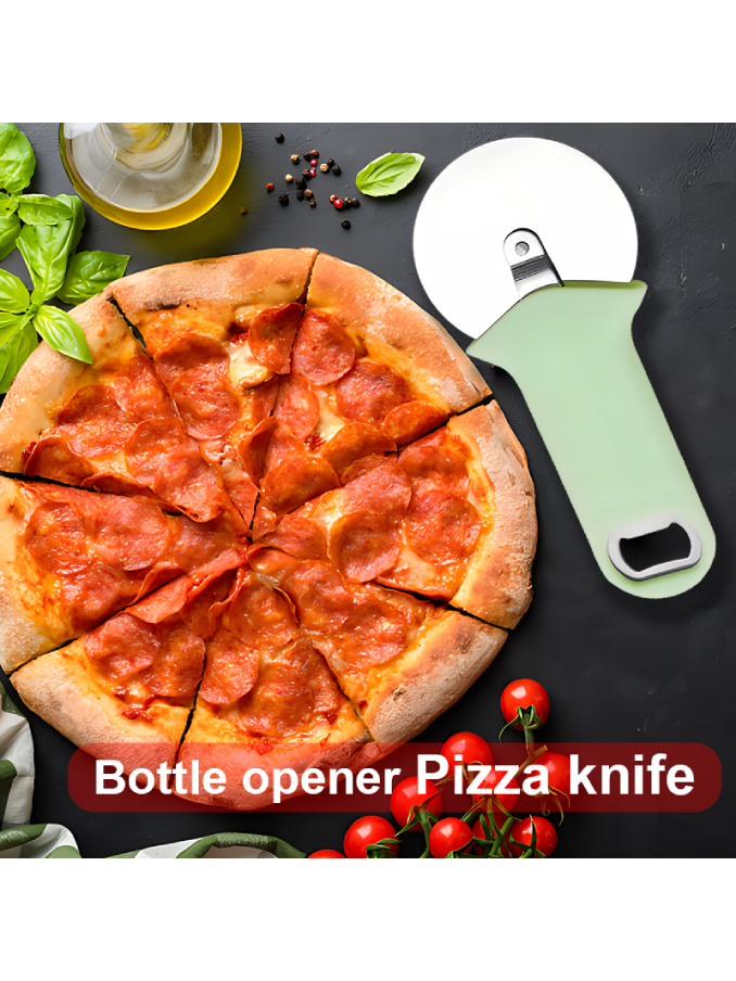 Pizza tools 430 stainless steel pizza cutter wheel pizza slicer with beer opener