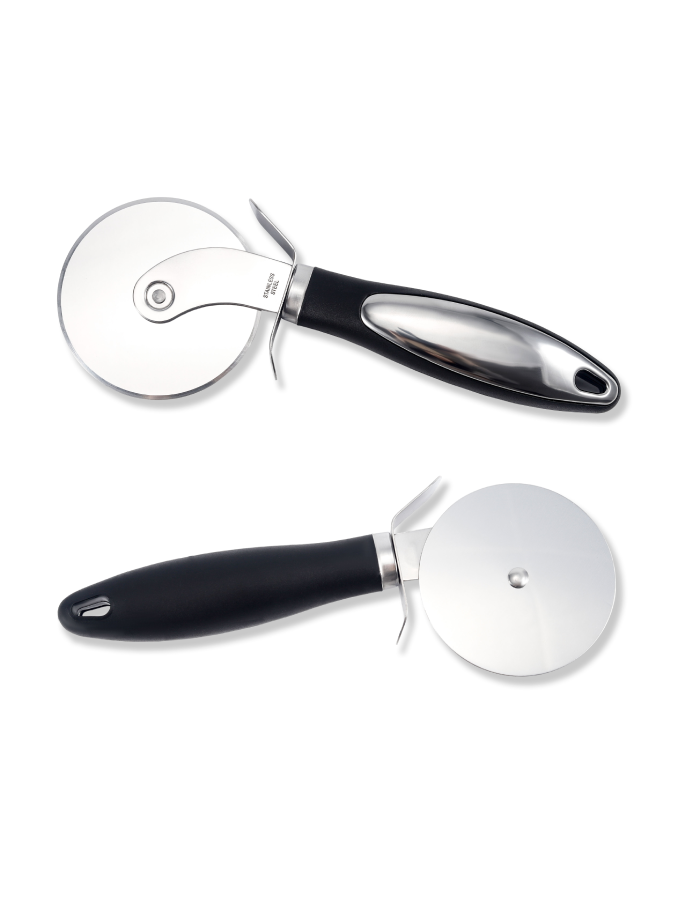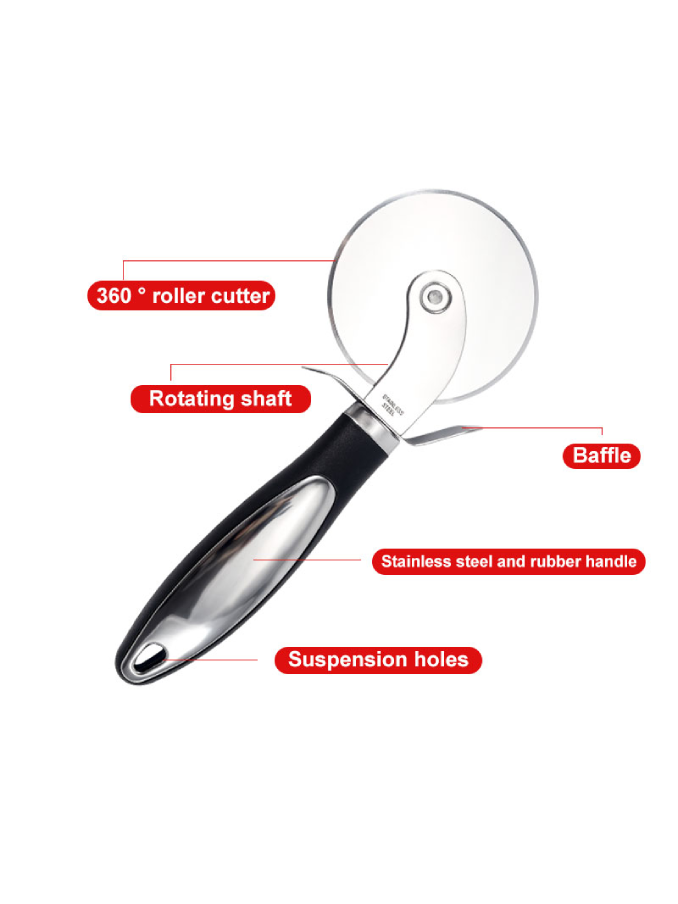 kitchen accessories custom stainless steel roller divider wheel blade knife round pizza cutter slicer with handle