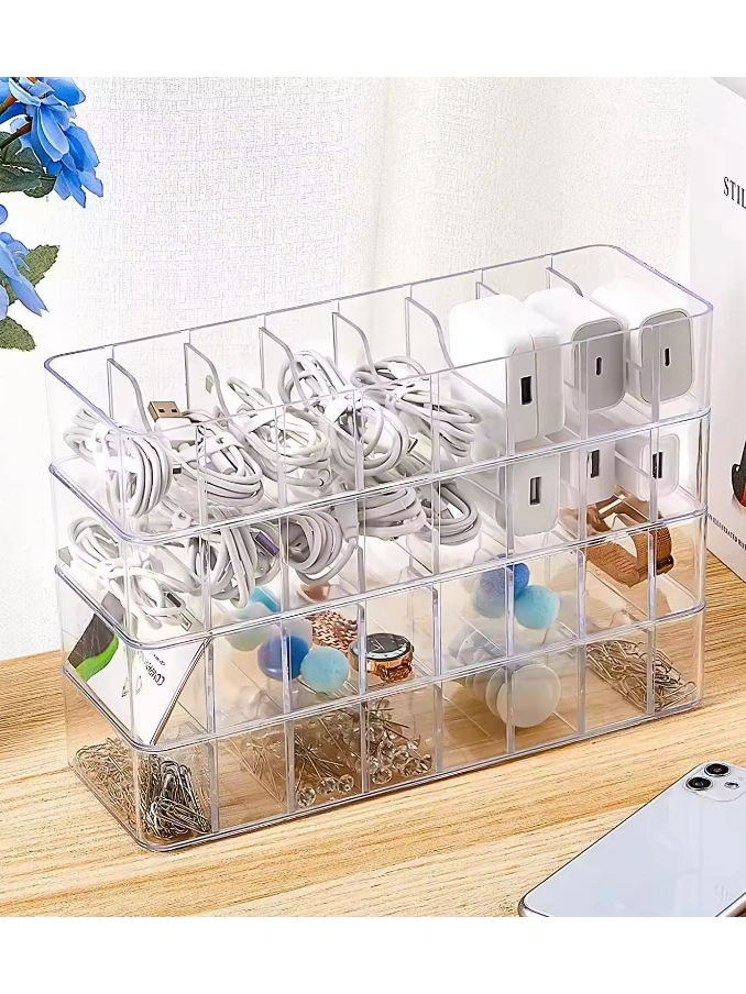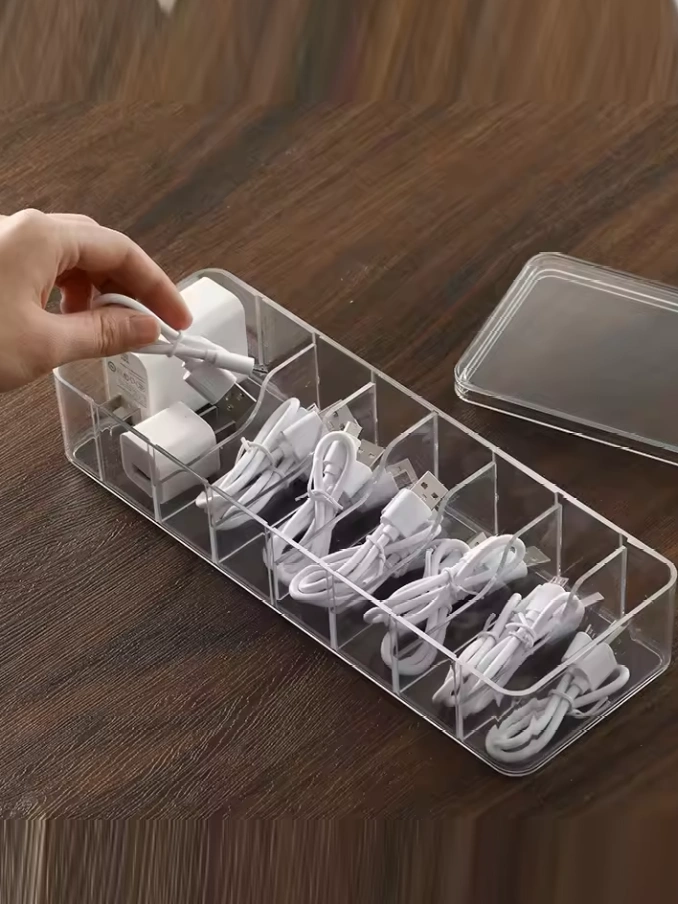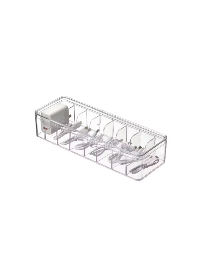 Square Desktop Organizer Box Glossy Plastic Mobile Phone Charging Data Cable & Power Wire Storage Square Shape