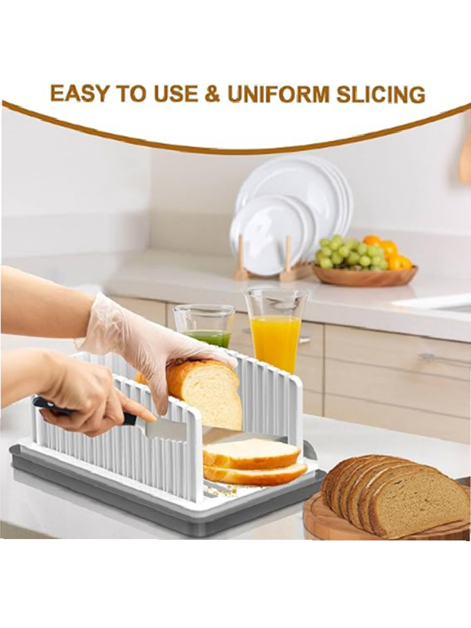 Upgrade Foldable Plastic Bread Slicer Tray Detachable Slicing Guide Adjustable Width for Homemade Bread Slicing