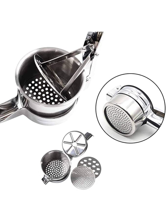 Professional Manual Heavy Duty Kitchen Tool Press Potato Masher Ricer Stainless Steel with 3 Removable Interchangeable Discs