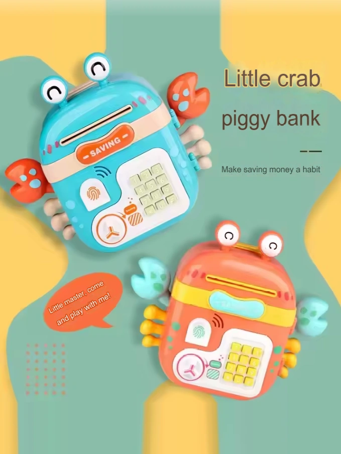 New style plastic crab shape simulation saving money box toys safe children password ATM toy piggy bank