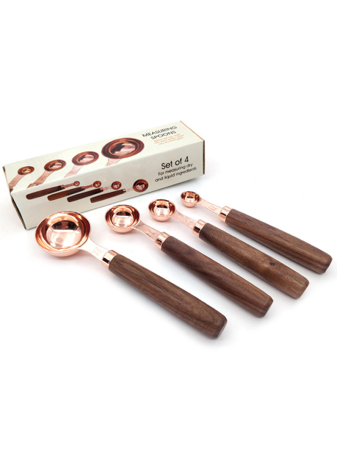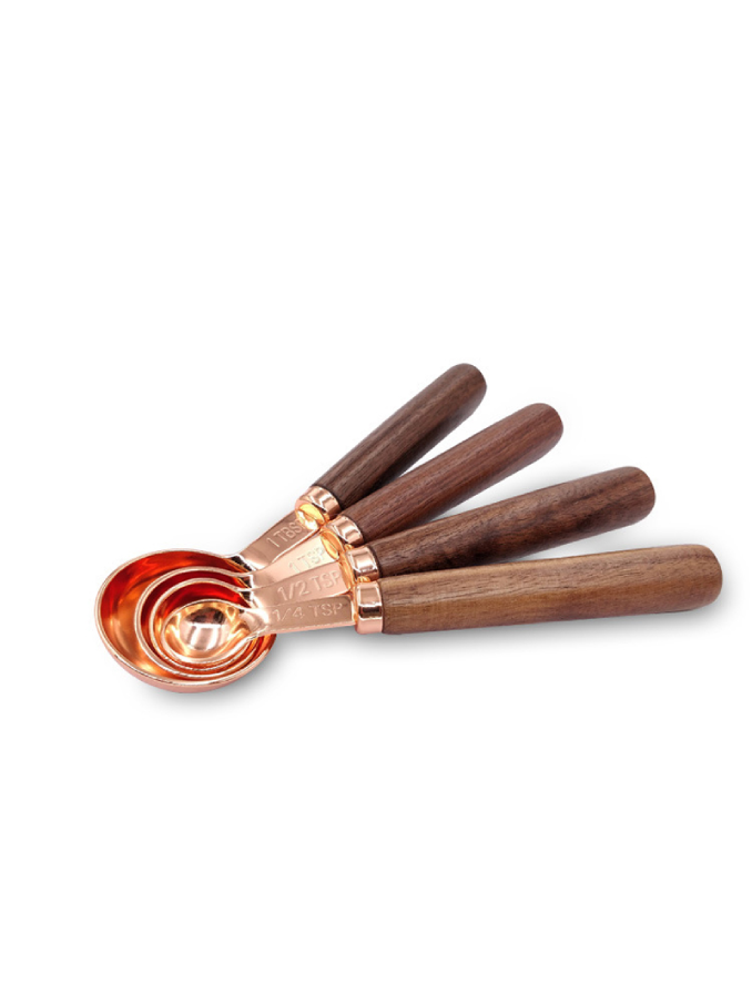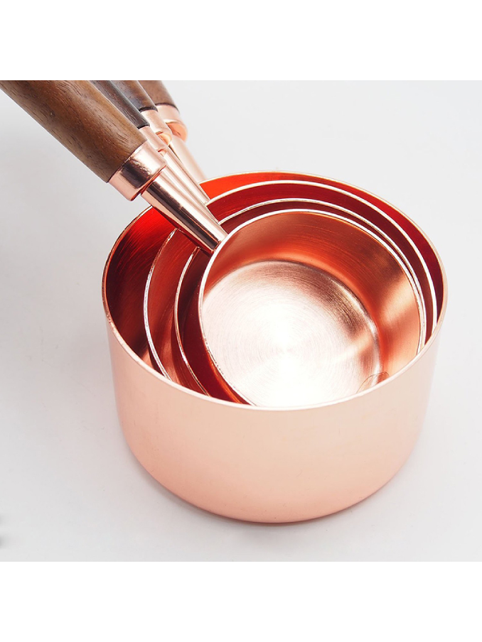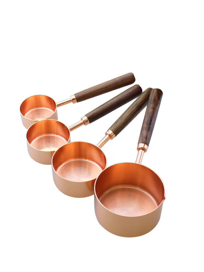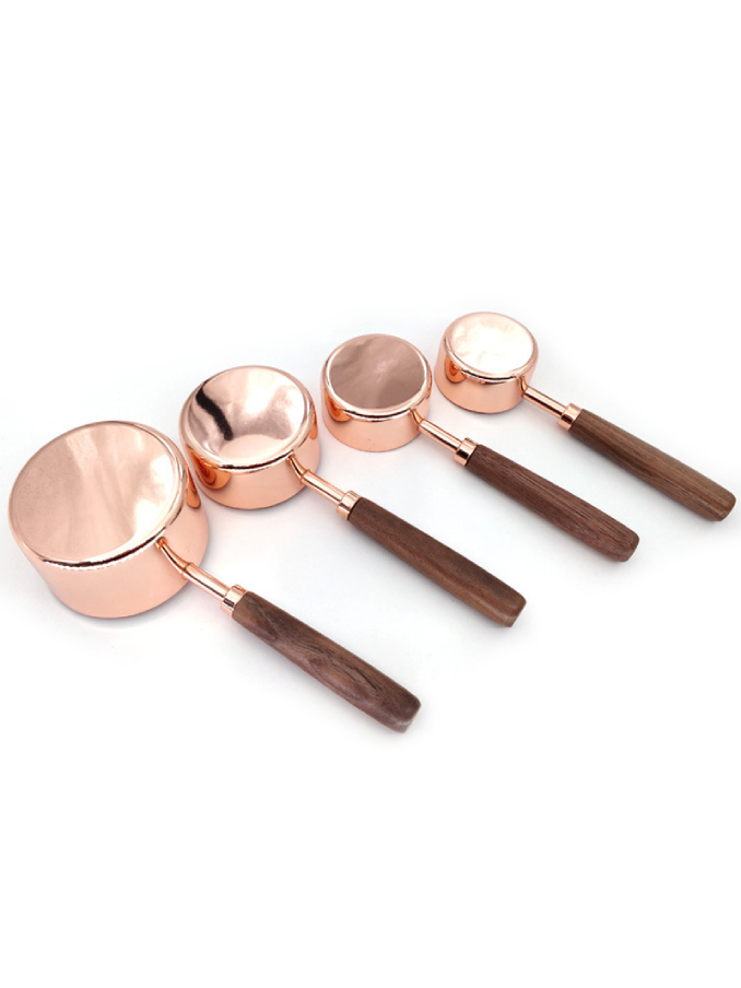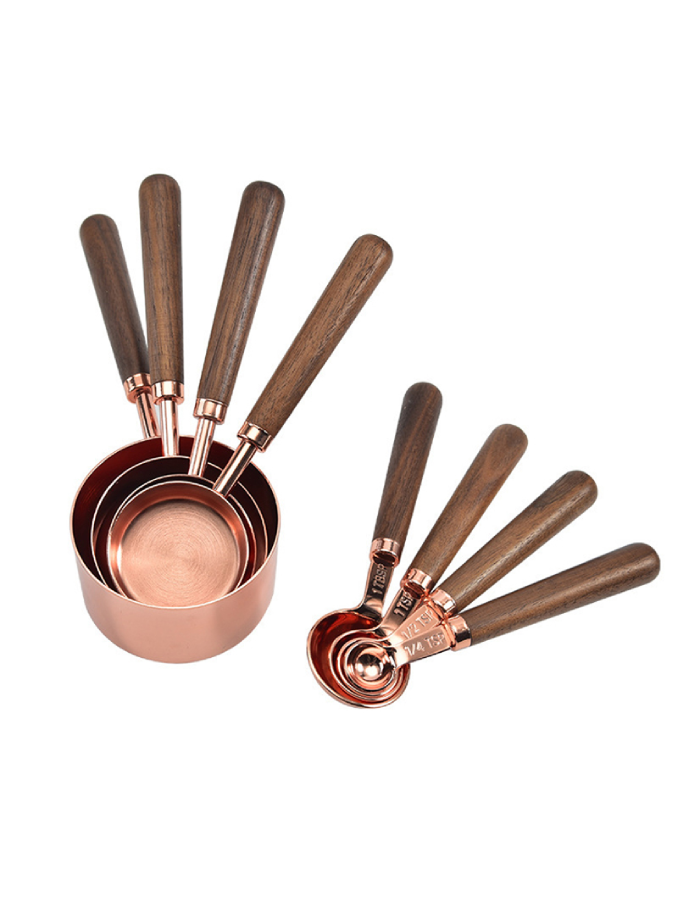 Set of 8 Copper Stainless Steel Walnut Handle Wooden Measuring Cups And Spoons for Dry and Liquid Ingredients