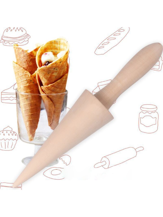 Kitchen Pastry Tools Wooden Pizzelle Roller Ice Cream Cone Mold Krumkake Pastry Tool Waffle Cone Roller