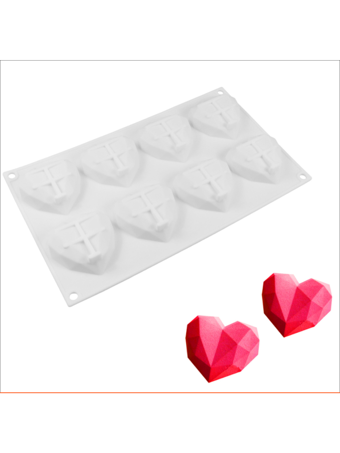 8 Heart Silicone Cake Mold 3D Diamond Love DIY Baking Candle Mold Modelling Decor Tools Handmade Cupcake Jelly Cookie Muffin Mak