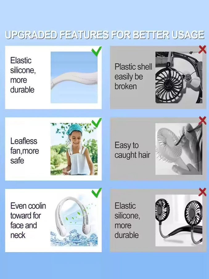 Battery Operated Wearable Personal Fan, Leafless, Rechargeable Portable Neck Fan for Outdoor Indoor, Birthday Gifts