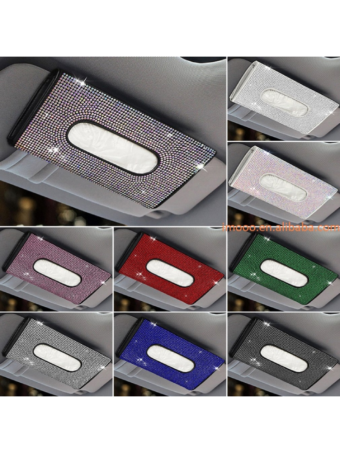 Diamond Car Tissue Box Bling Car Sun Visor Towel Sets Holder Auto Interior Storage Decoration Car Accessories