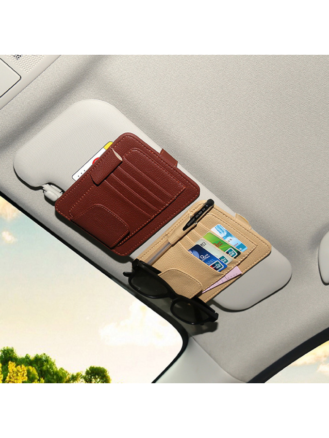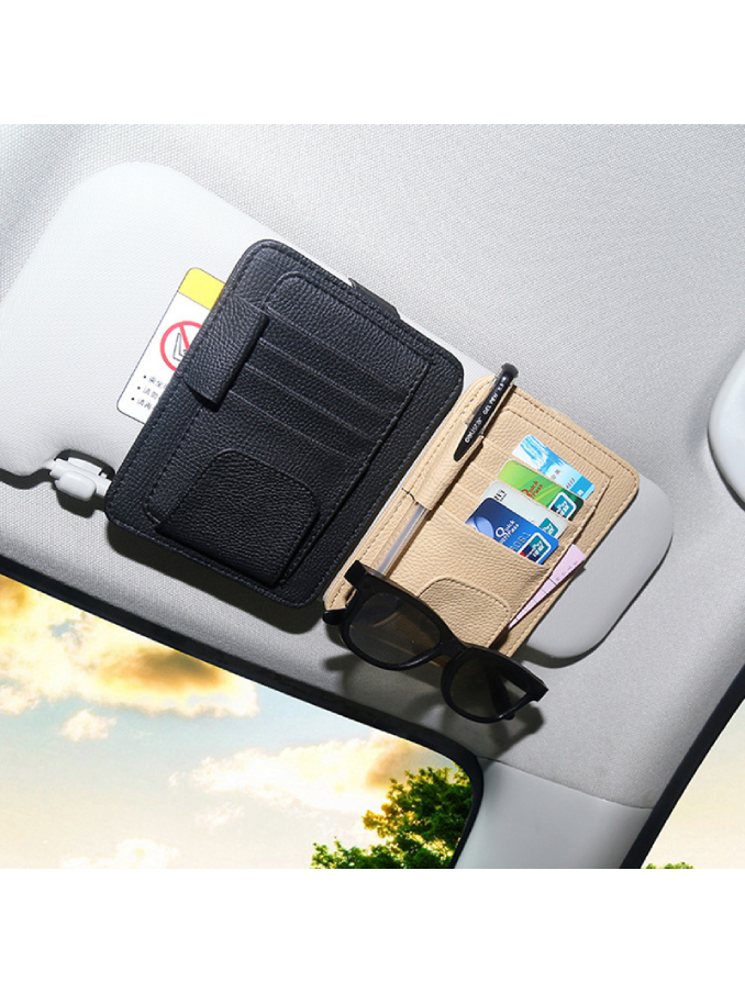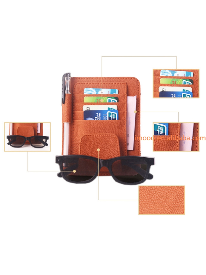 Factory Price Leather Auto Visor Storage Bag Car Sunvisor Card Bags Glasses Bill Pen Holder Stowing Tidying Car Organizer