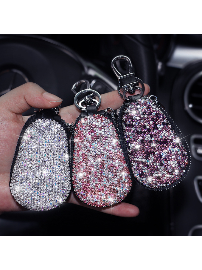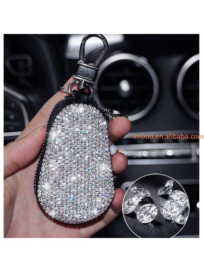 Rhinestone Key Case for Car Key Cover Genuine Leather Key Wallets Bag Fashion Women Diamond Holder Car Protection