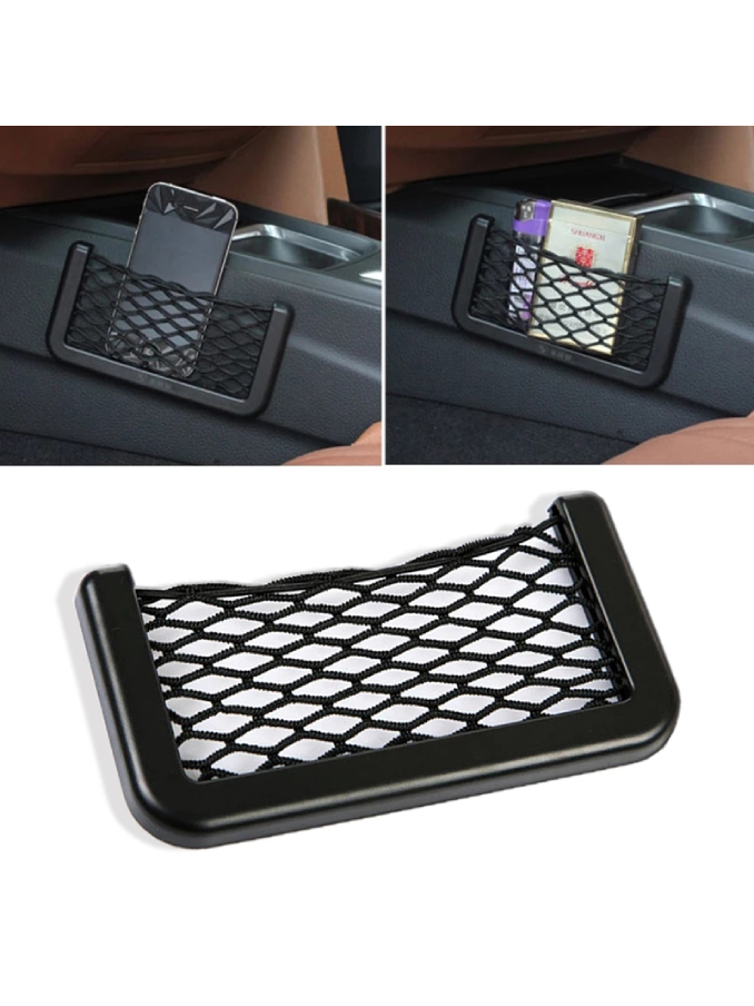 Car Seat Side Storage Net Bag Auto Adhesive Organizer Car Door Side Phone Holder 15-20cm Pocket with Card Package