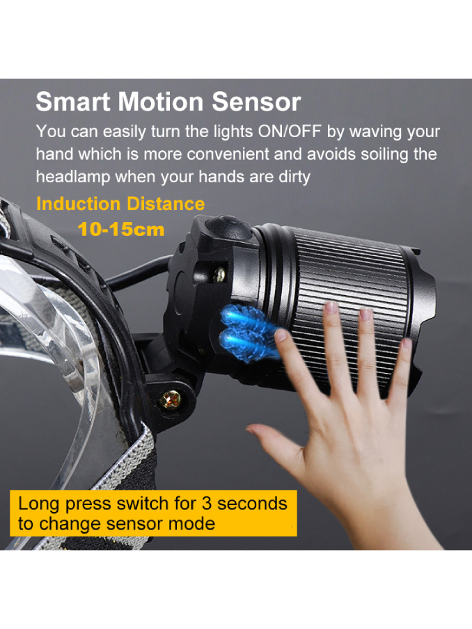 Motion Sensor Headlamp USB Zoomable Power Bank White Yellow Light Dual LED Outdoor Headlight Fishing Induction Head Lamp Torch