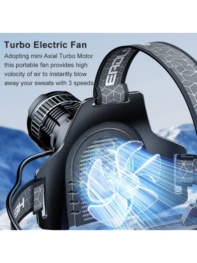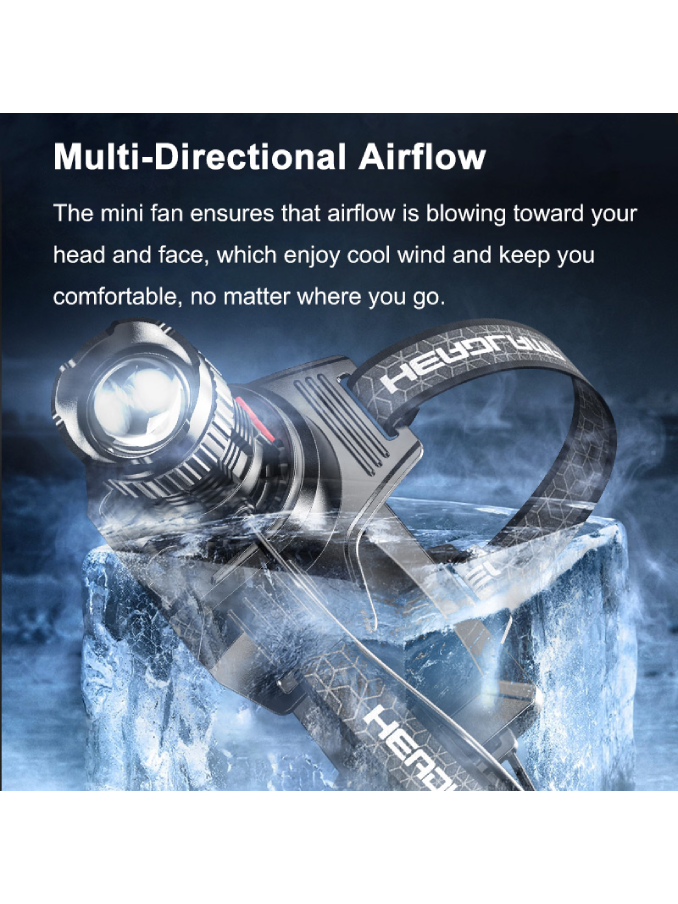 Aluminum Alloy Headlight Small Electric Fan USB Zoomable 5000 Lumens White Laser 20W LED Head Lamp Fishing Emergency Headlamp