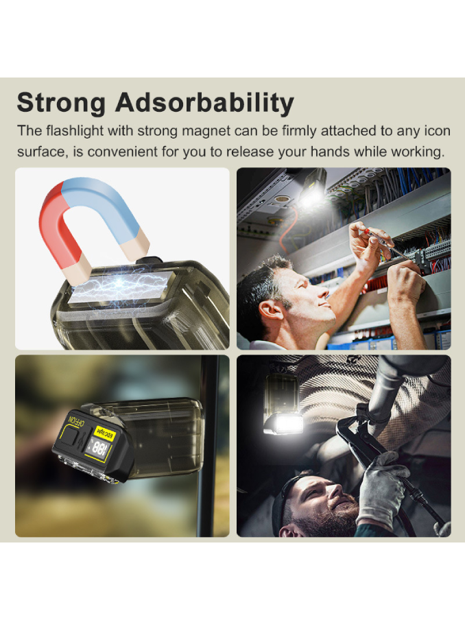 EDC Flashlight 180 Degree Rotatable COB OLED Digital Display USB 6 Modes Working Light Magnet Red Blue Light Small Flash Light 10W