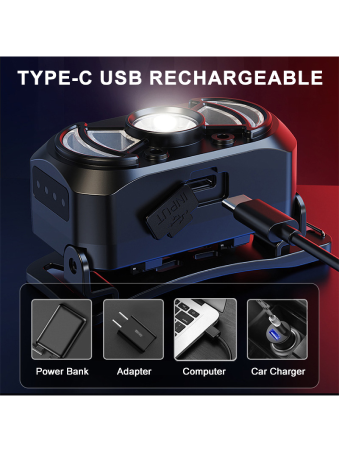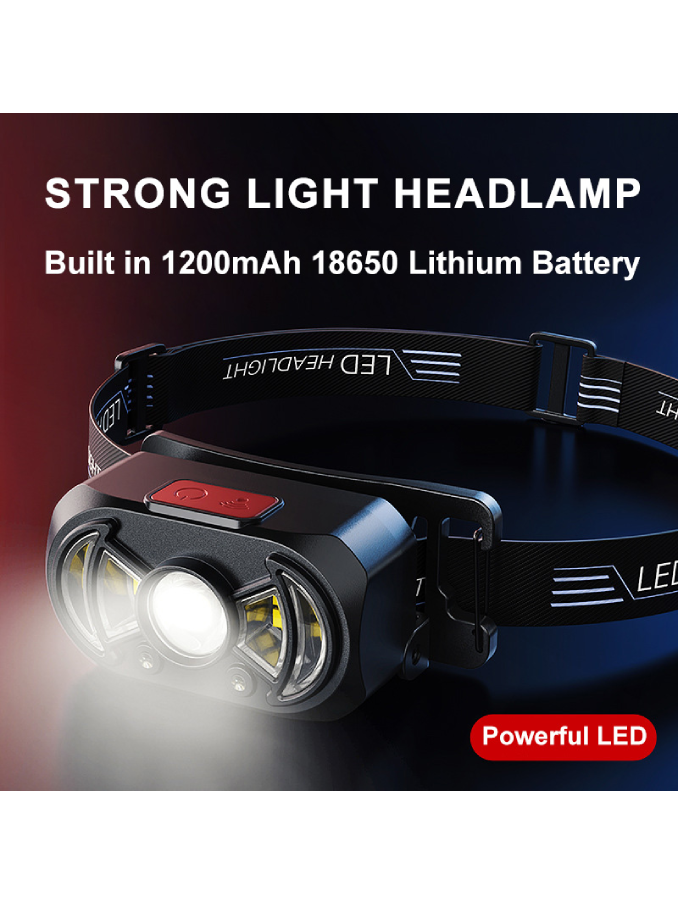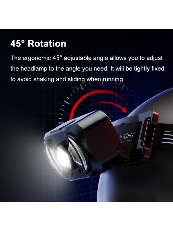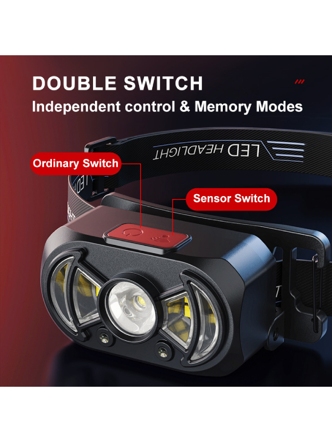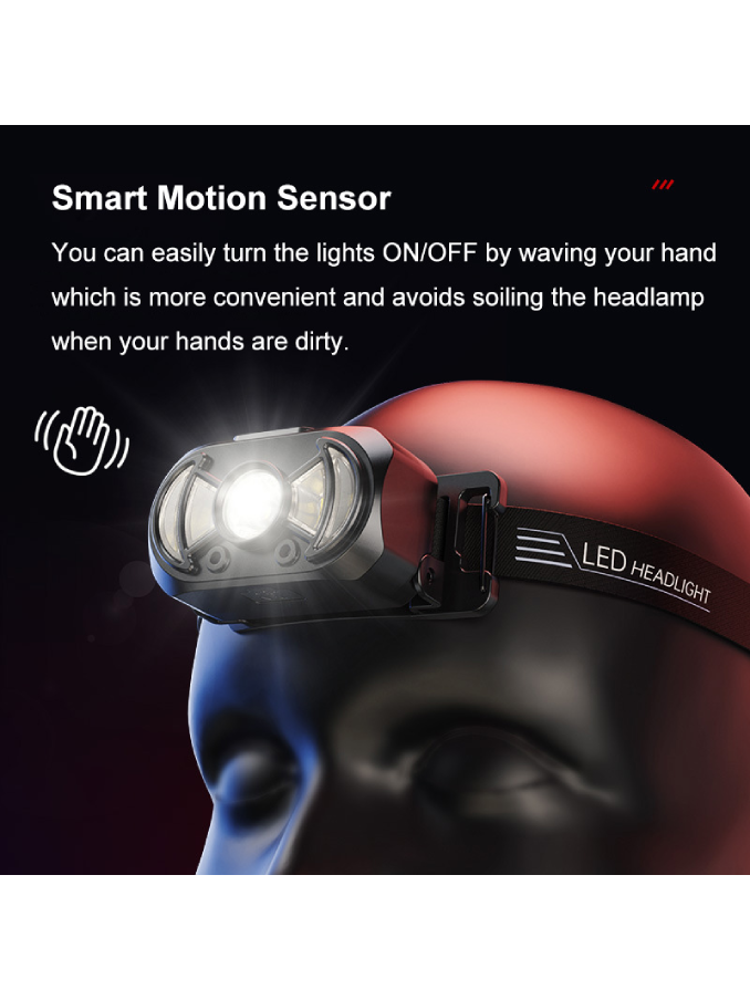 Sensor Headlamp Metal Buckle USB Head Torch Power Display 6 Mode Side COB Red Blue Light Night Riding Hiking Induction Headlight 10W